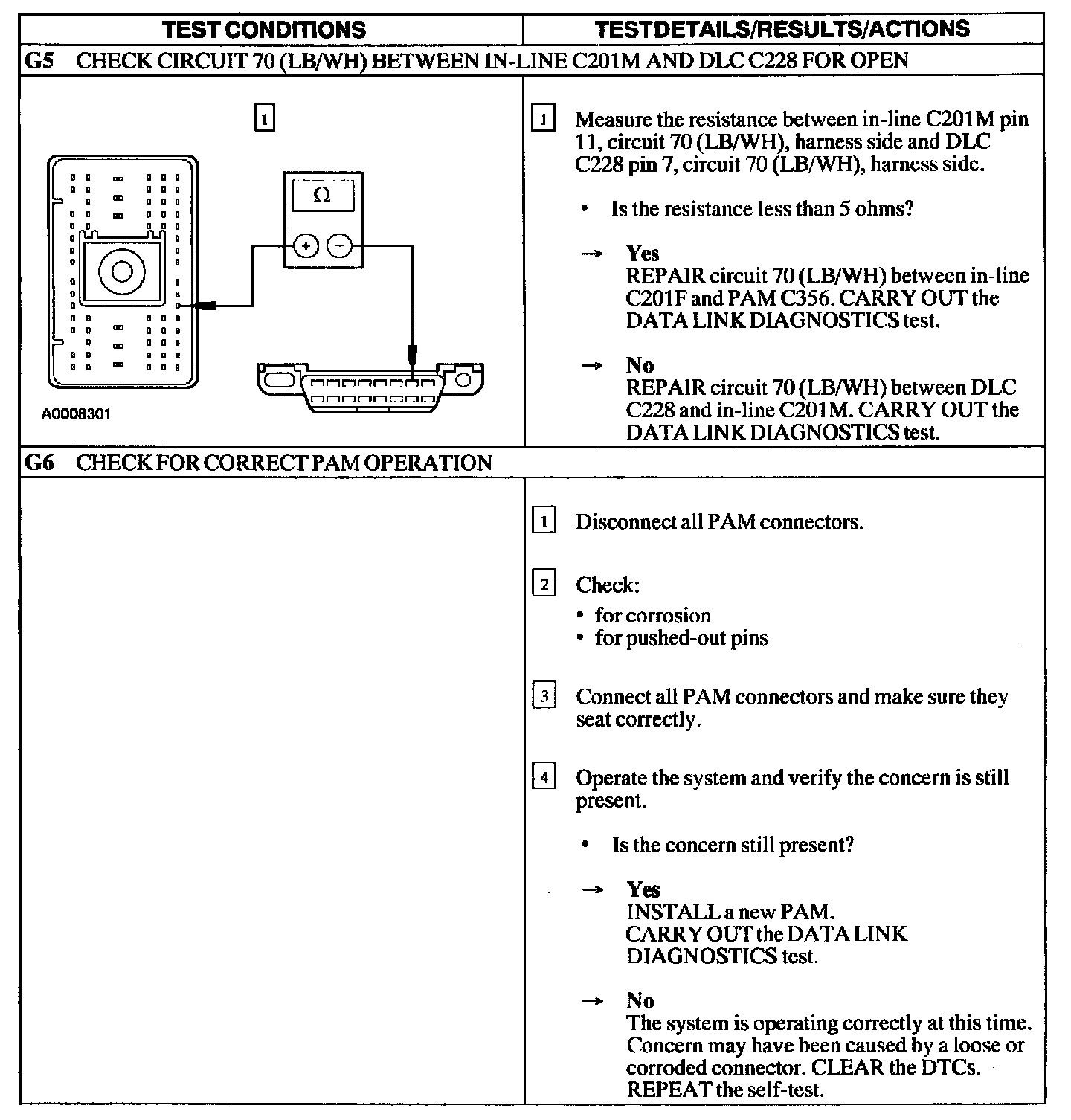 Test G: PAM Module Does Not Respond to the Scan Tool