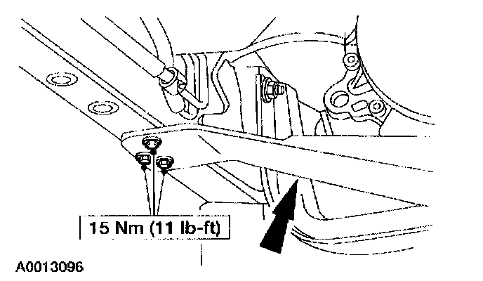 9. Remove the bolts, the nuts, and the transmission support crossmember.