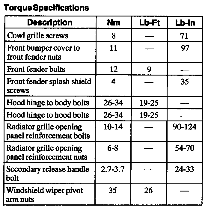 Torque Specifications: