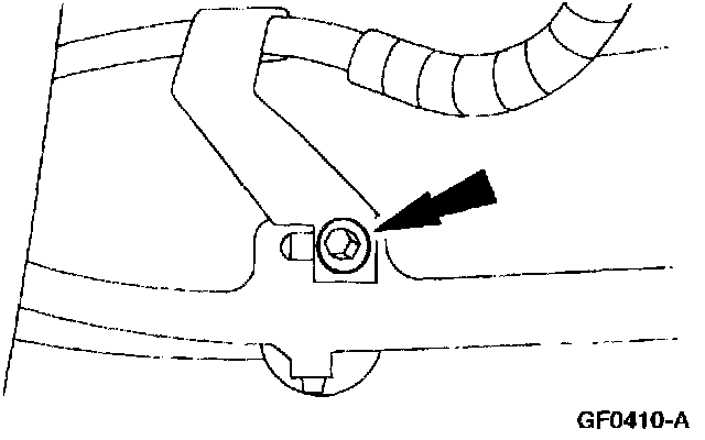 6. Remove the brake hose bracket screw and bracket from the front suspension lower arm.