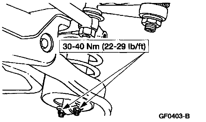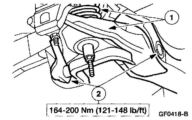 - The forward front suspension lower arm nut must be tightened first while the control arms are held at the curb position ride height.
