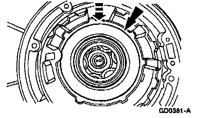 15. Note: Make sure the reverse clutch cylinder lugs are completely seated in the notches of the reverse sun gear.