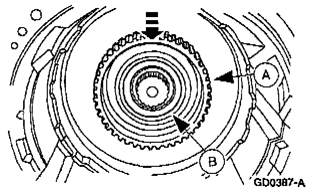 2 Maintaining downward pressure, use a depth micrometer to measure and verify intermediate clutch clearance is within specification.