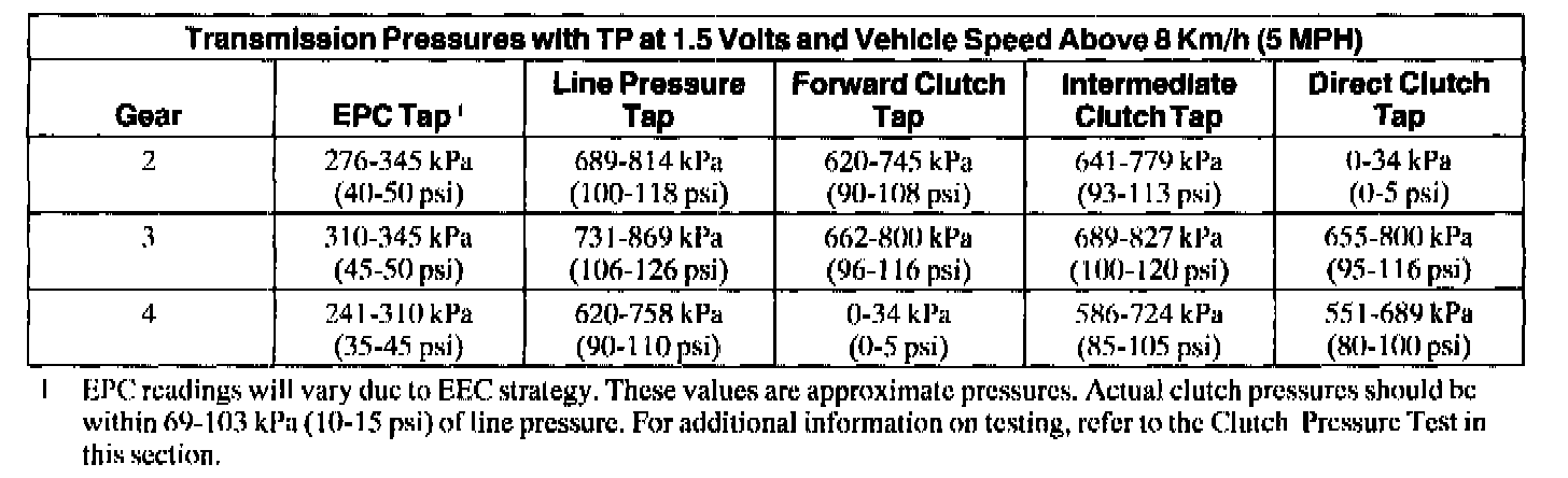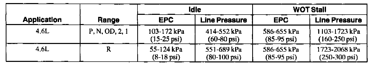 3. Place the ignition switch in the OFF position. If line pressure is not within specification, check EPC pressure.