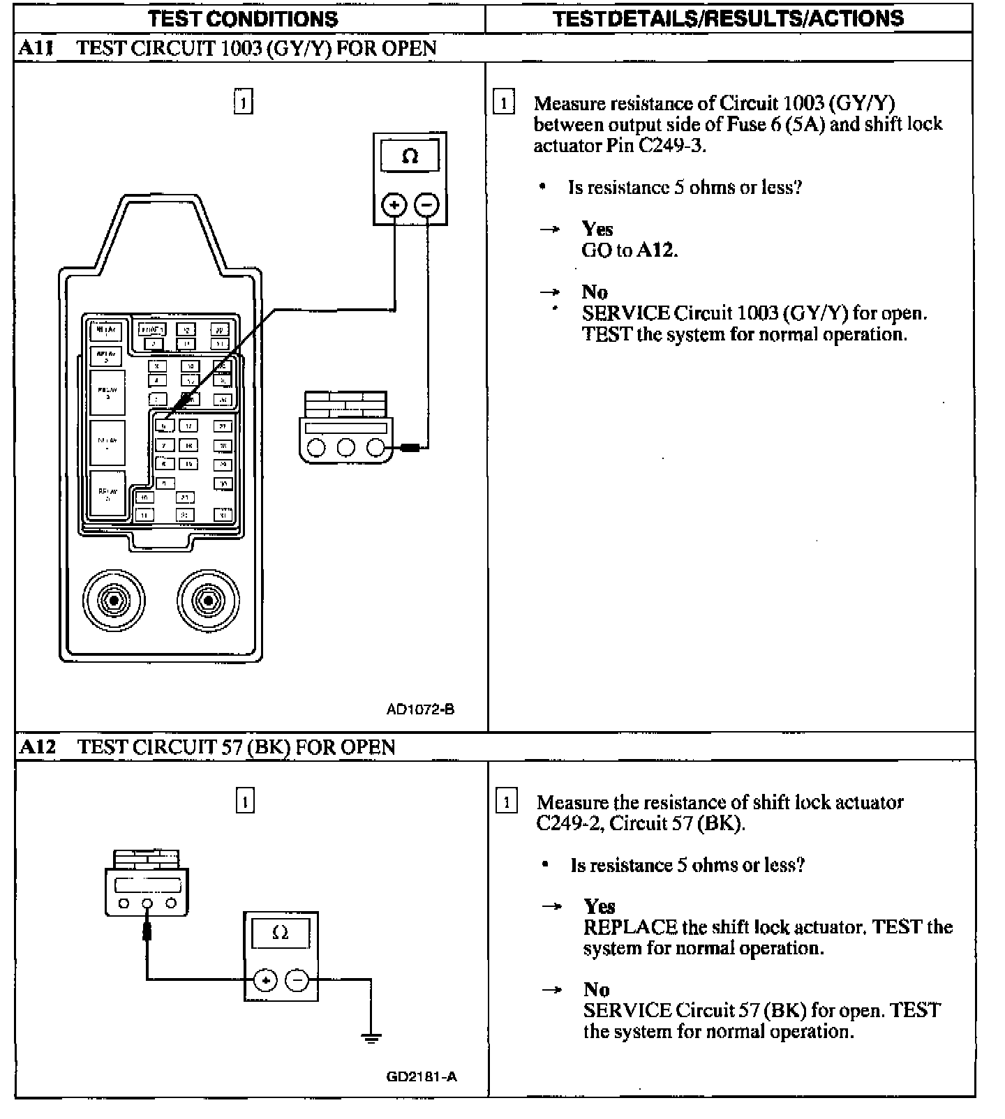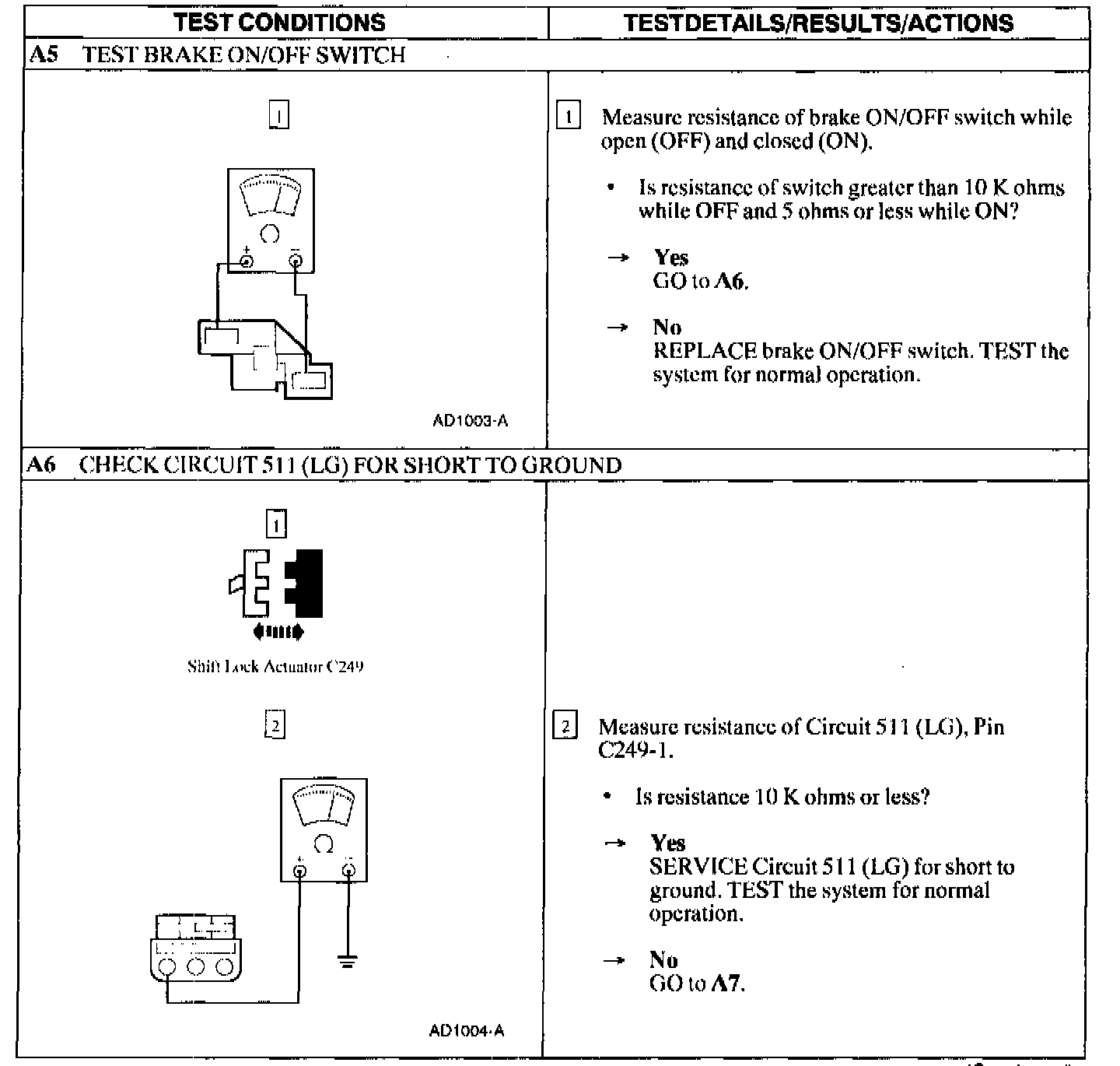 Test A: Shift Interlock System Does Not Release/Lock Correctly