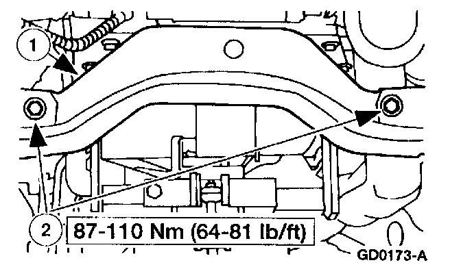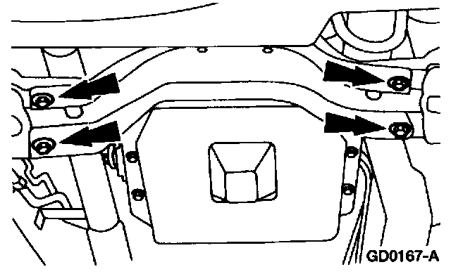 2 Remove the transmission crossmember.