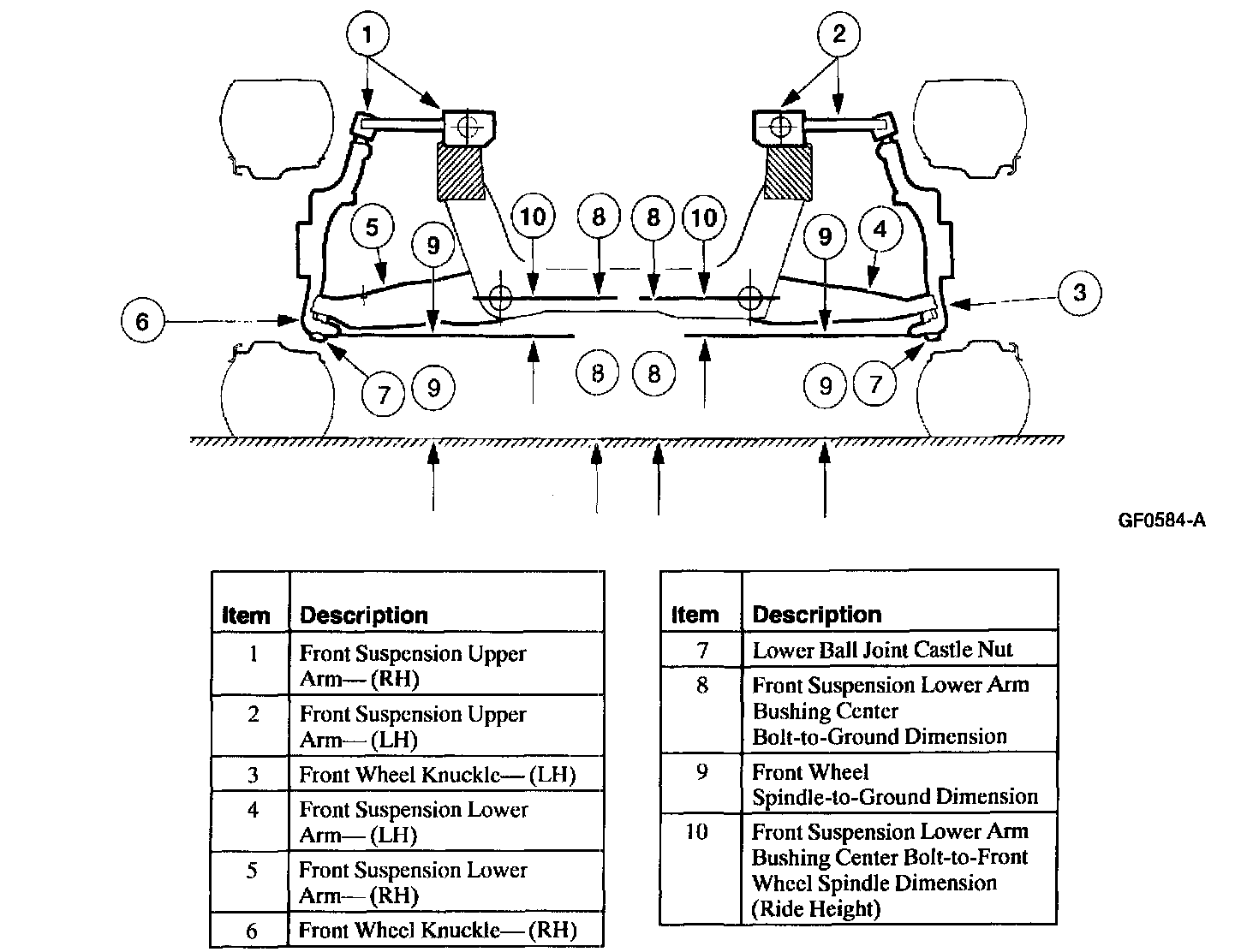 4. Measure the front suspension from the bottom of the front wheel knuckle to the ground, and record.