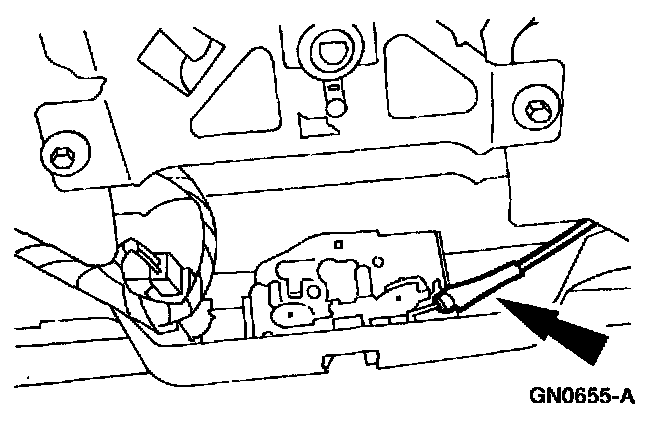 CAUTION: Be careful not to kink the liftgate latch control cable while disconnecting it.