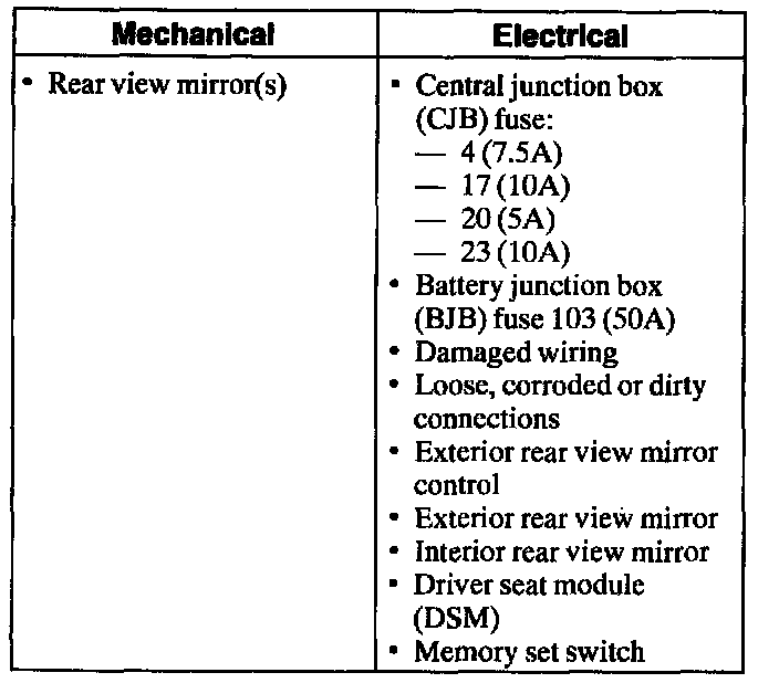 1. Verify the customer concern by operating the power exterior rear view mirrors or memory mirrors.