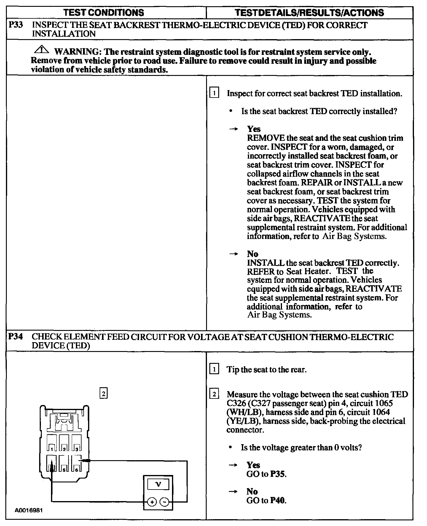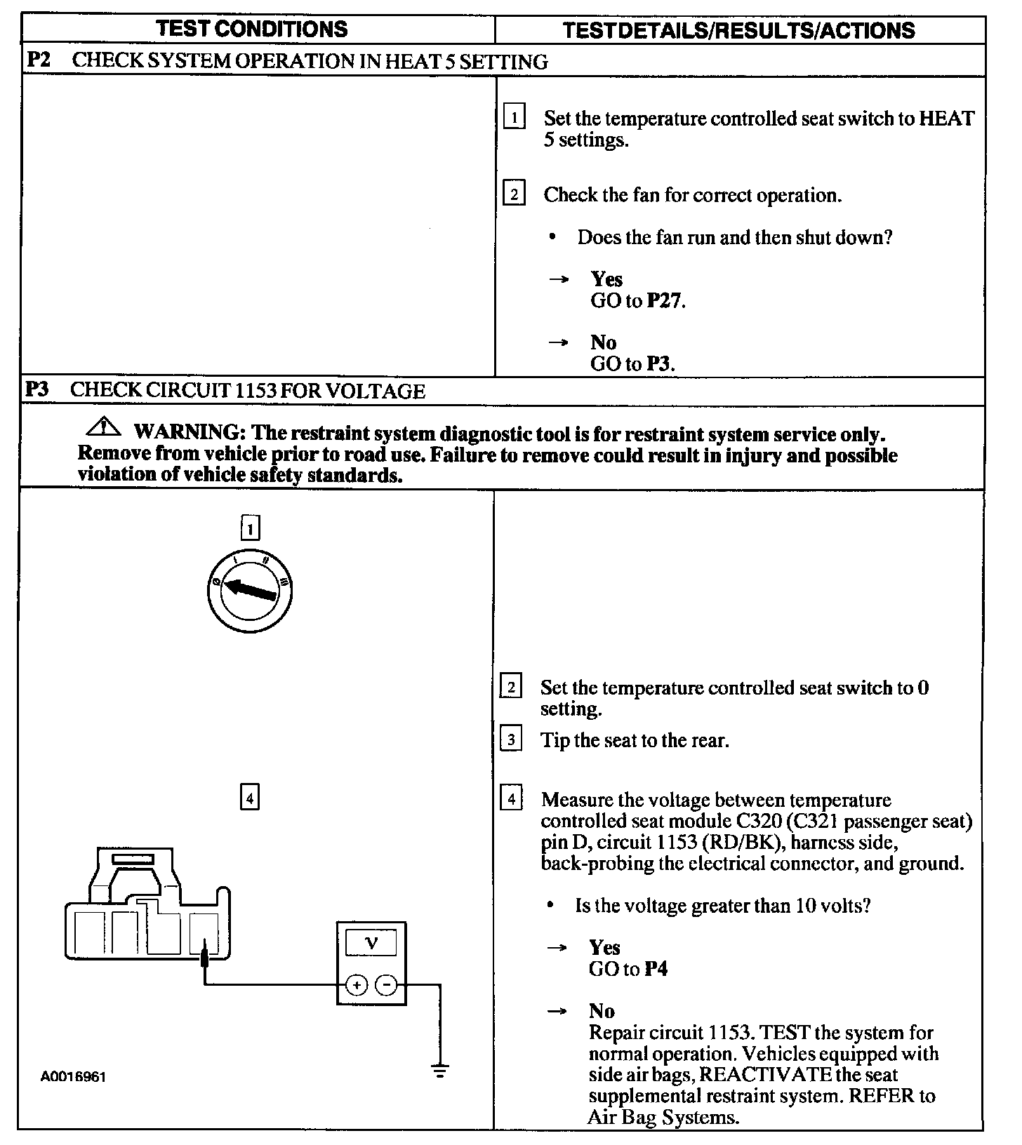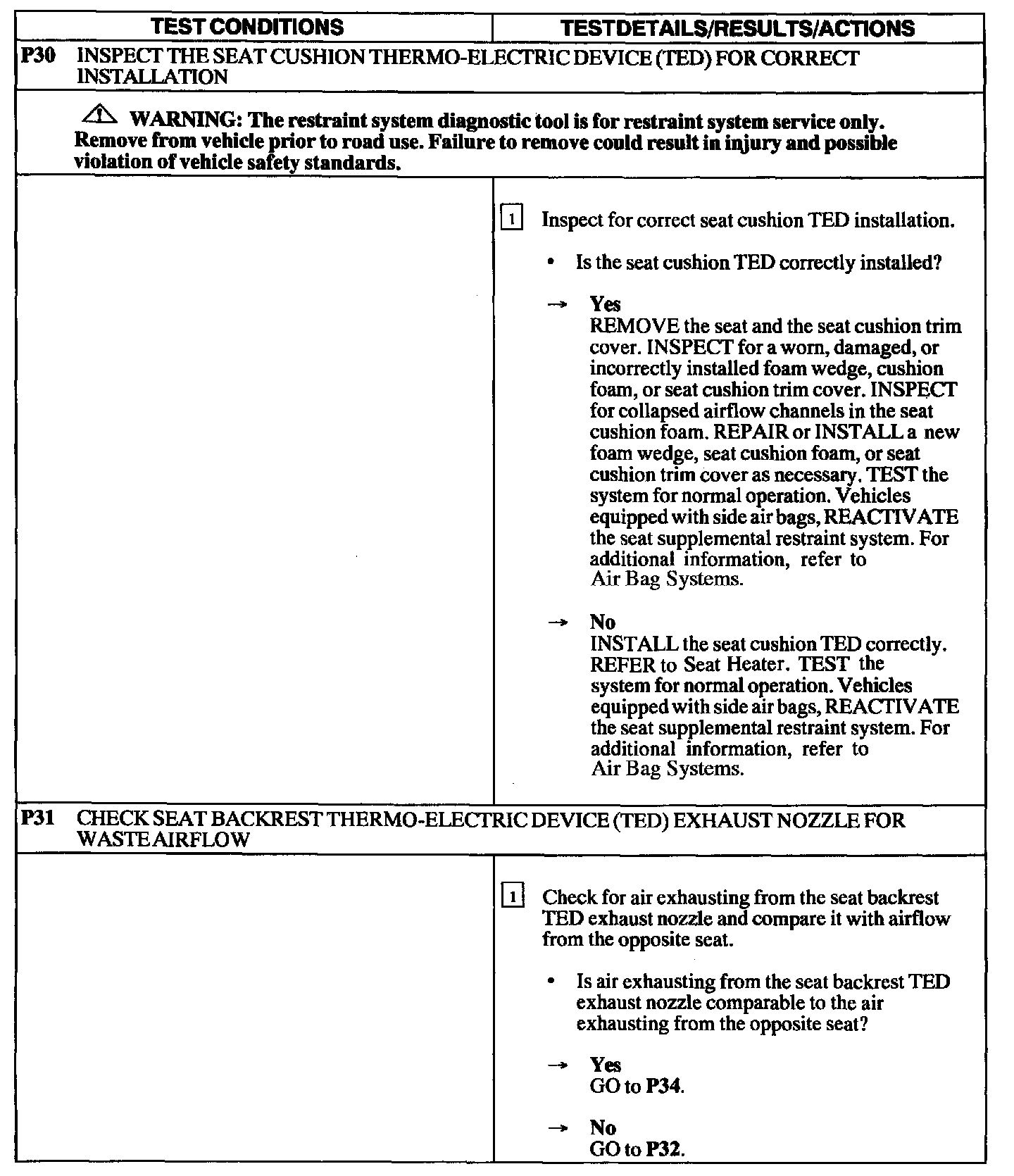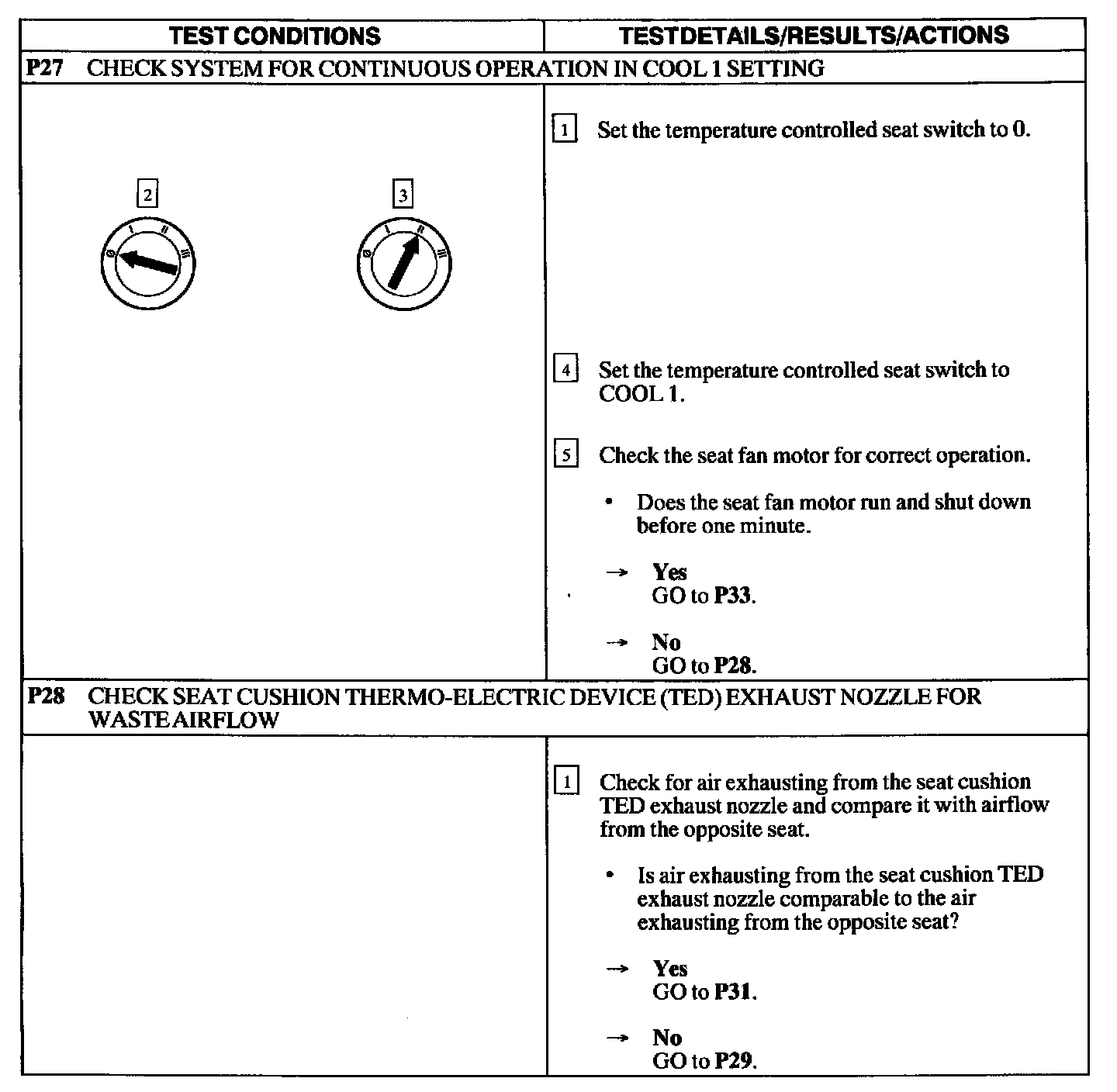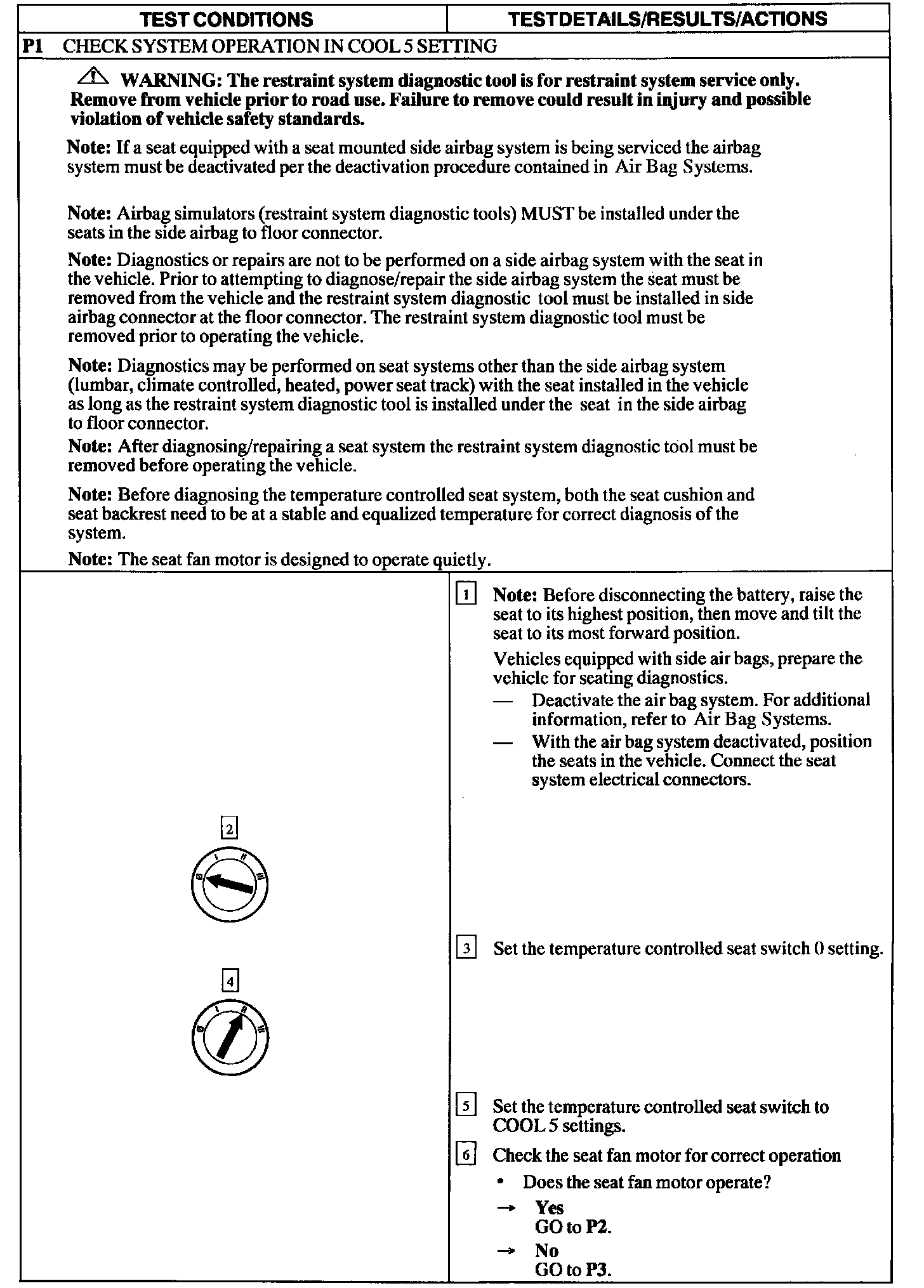 Test P: A Single Temperature Controlled Seat Is Inoperative/Does Not Operate Correctly
