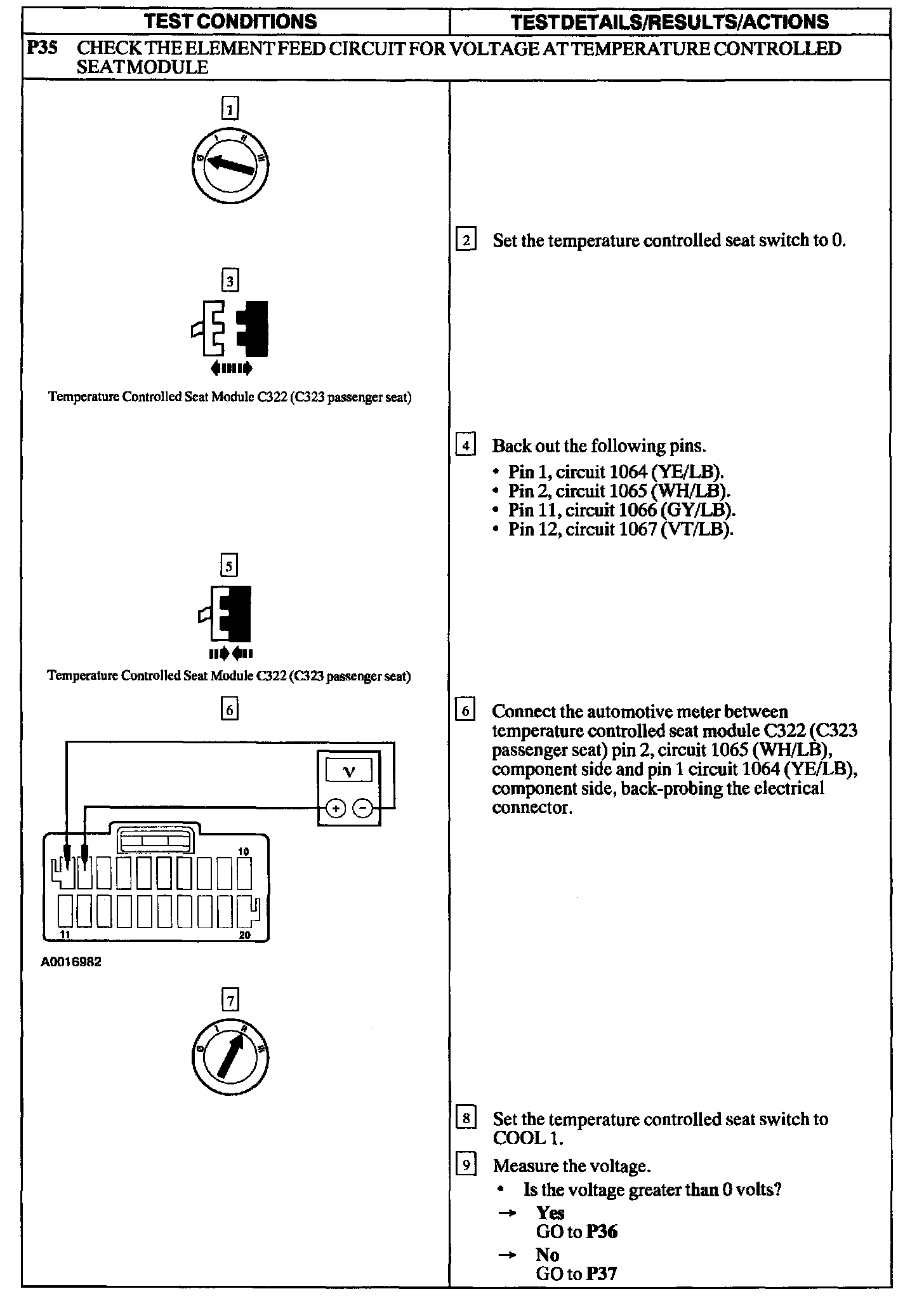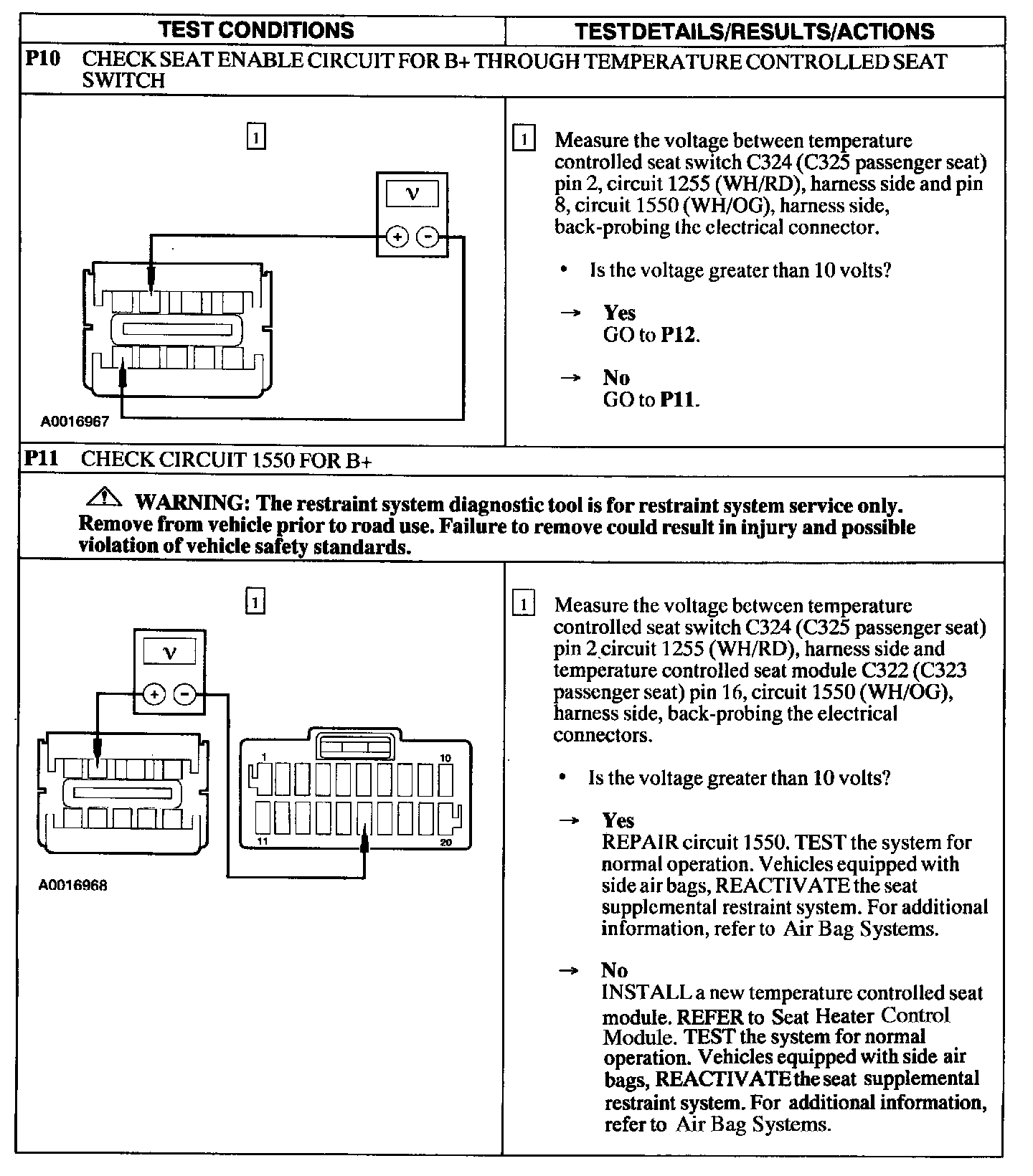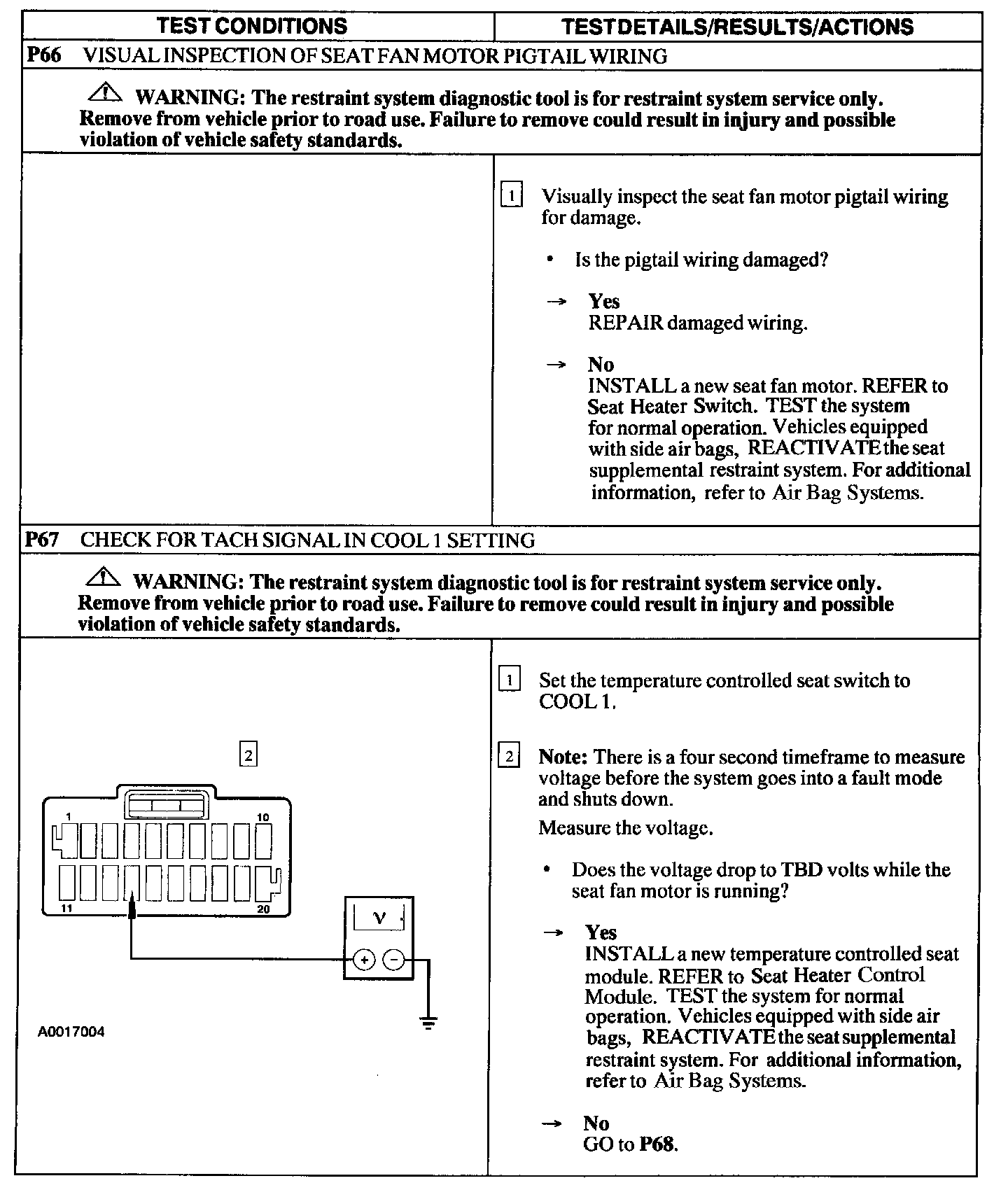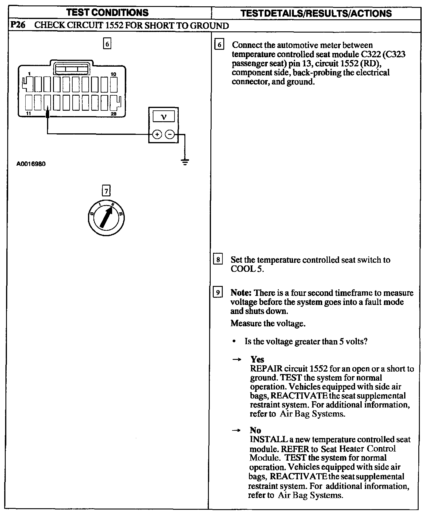 Test P: A Single Temperature Controlled Seat Is Inoperative/Does Not Operate Correctly