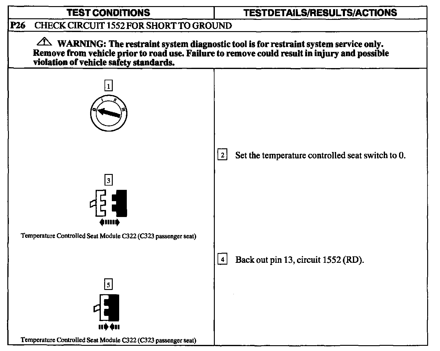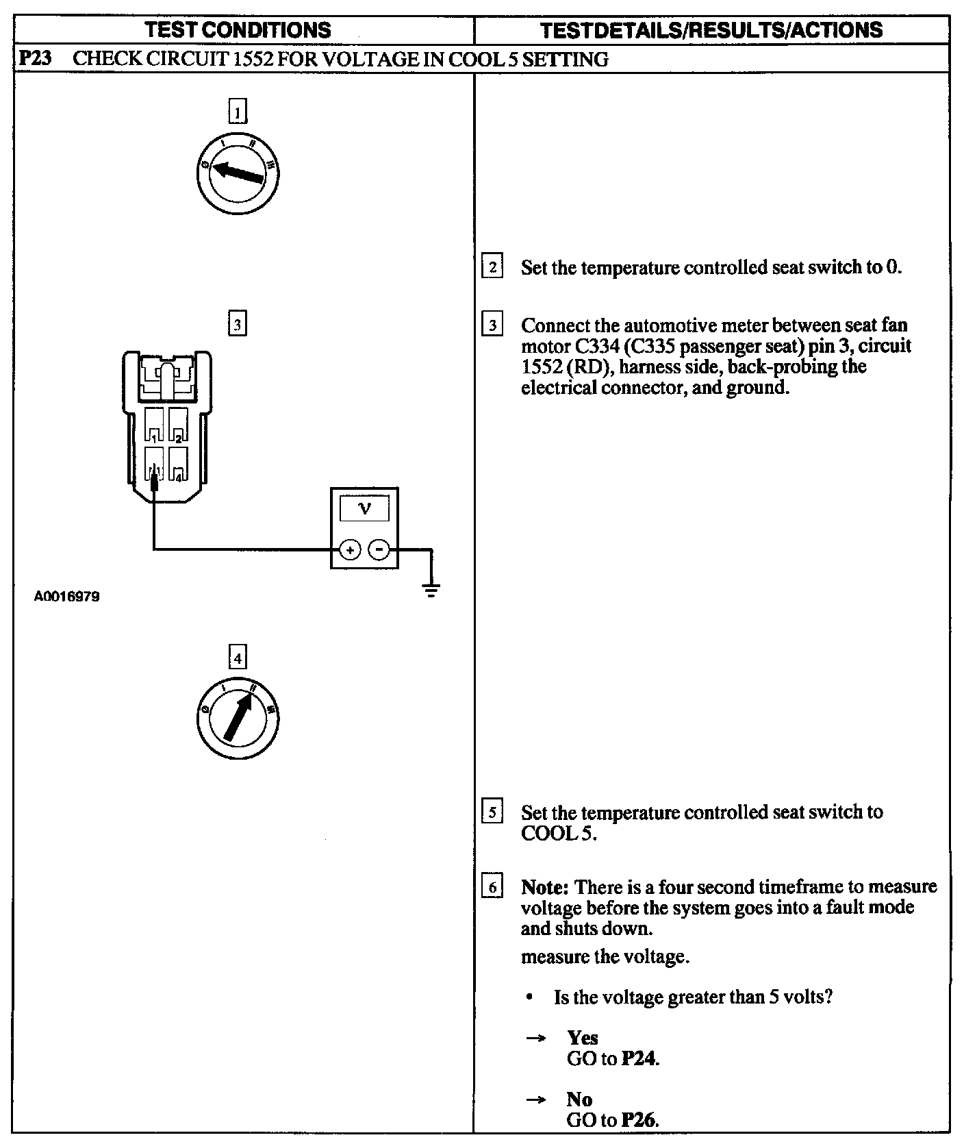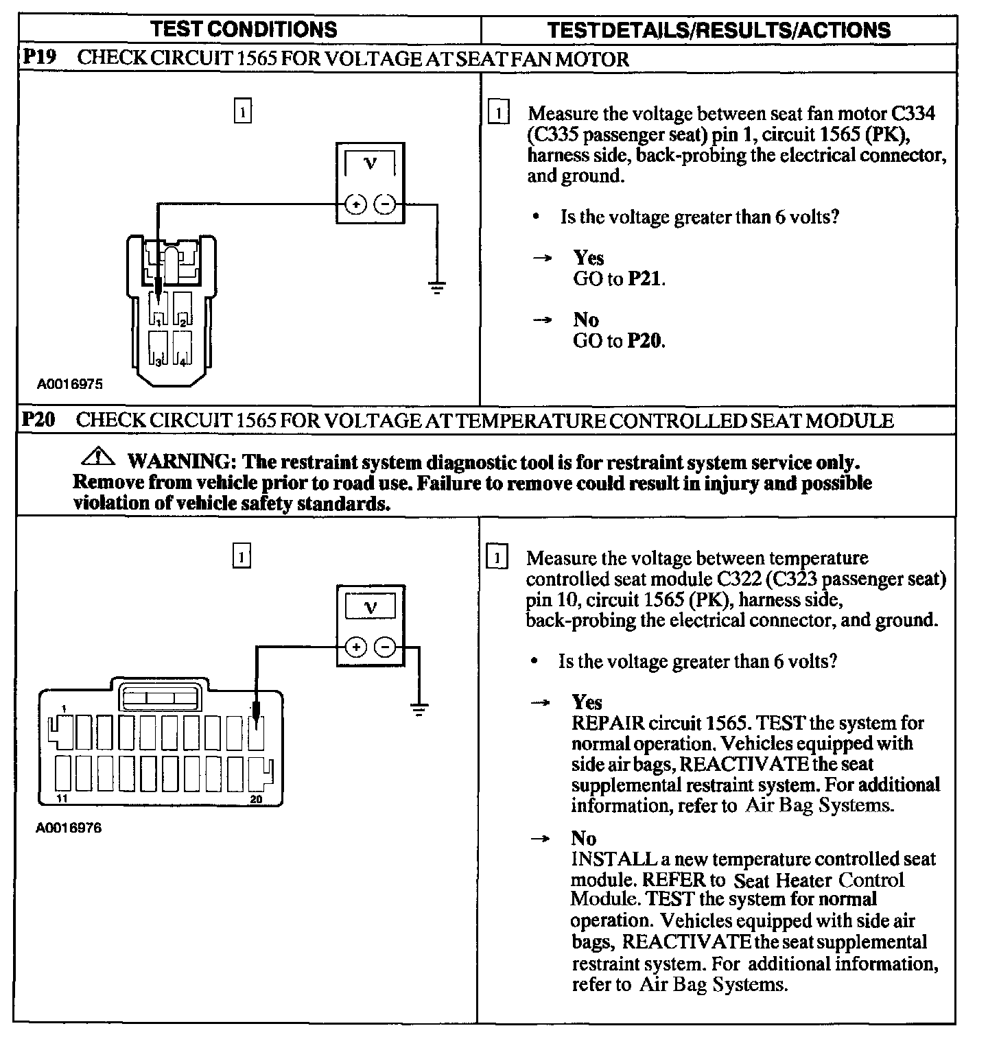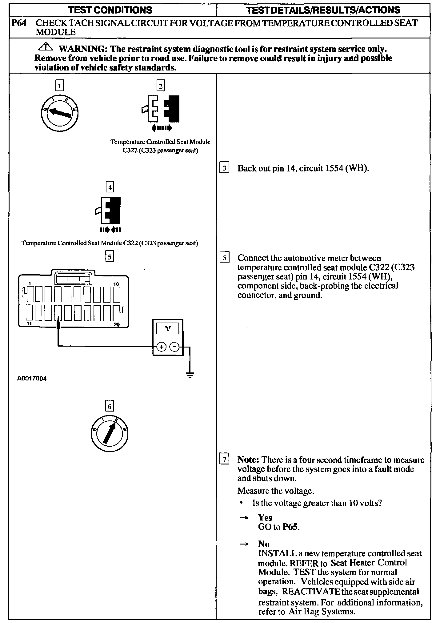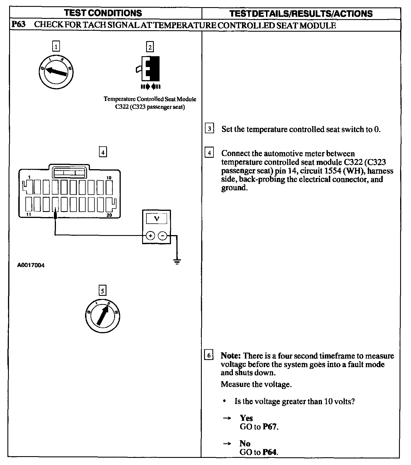 Test P: A Single Temperature Controlled Seat Is Inoperative/Does Not Operate Correctly