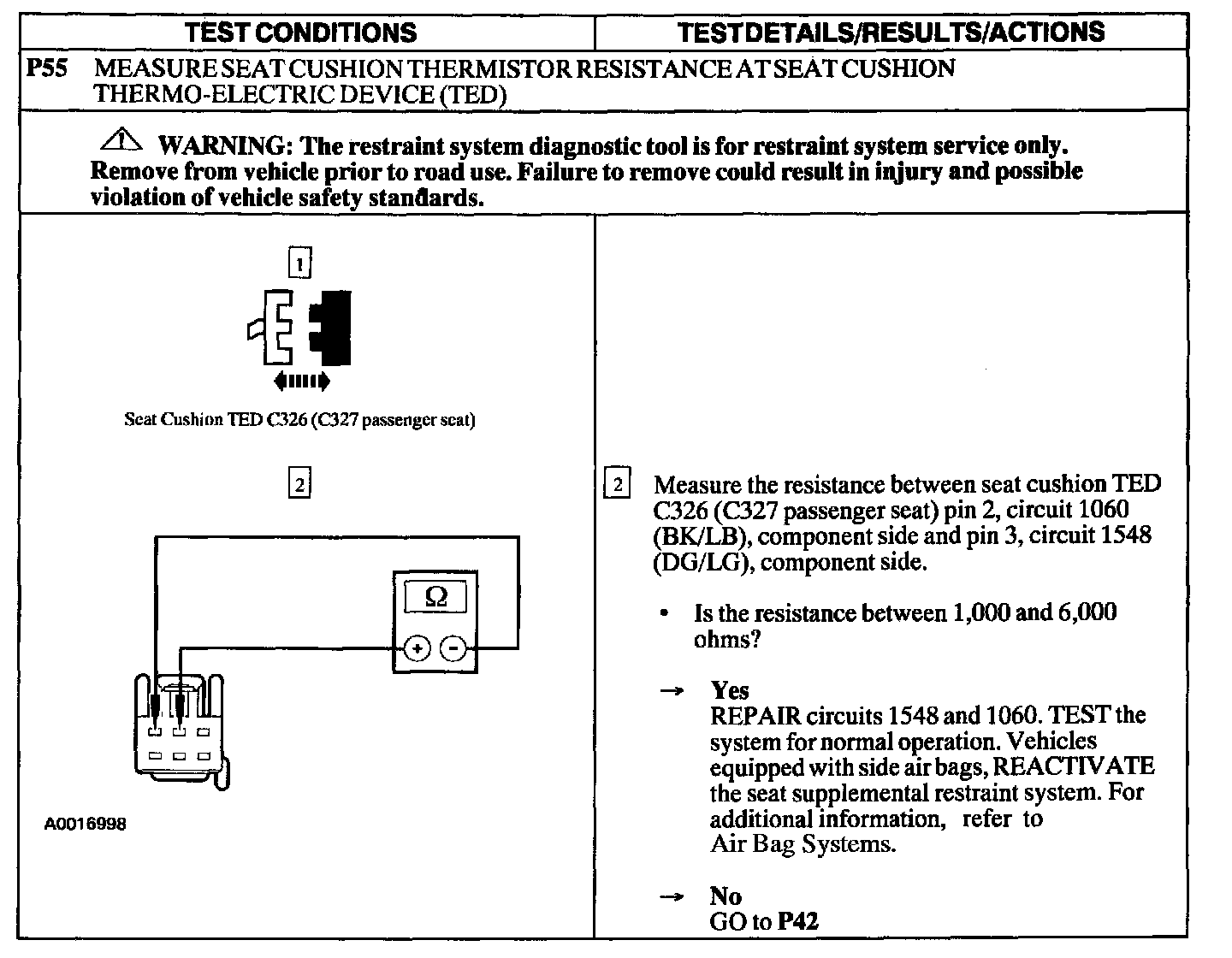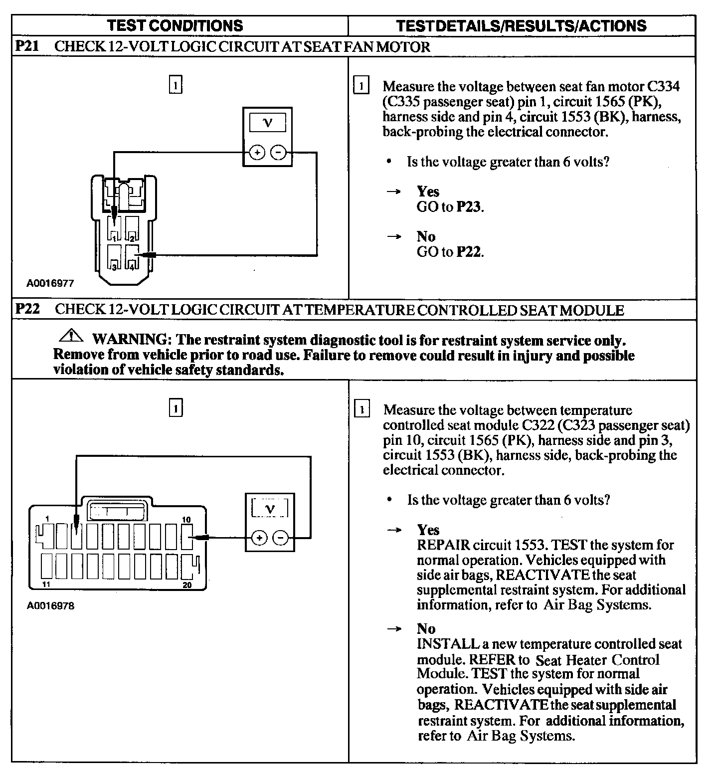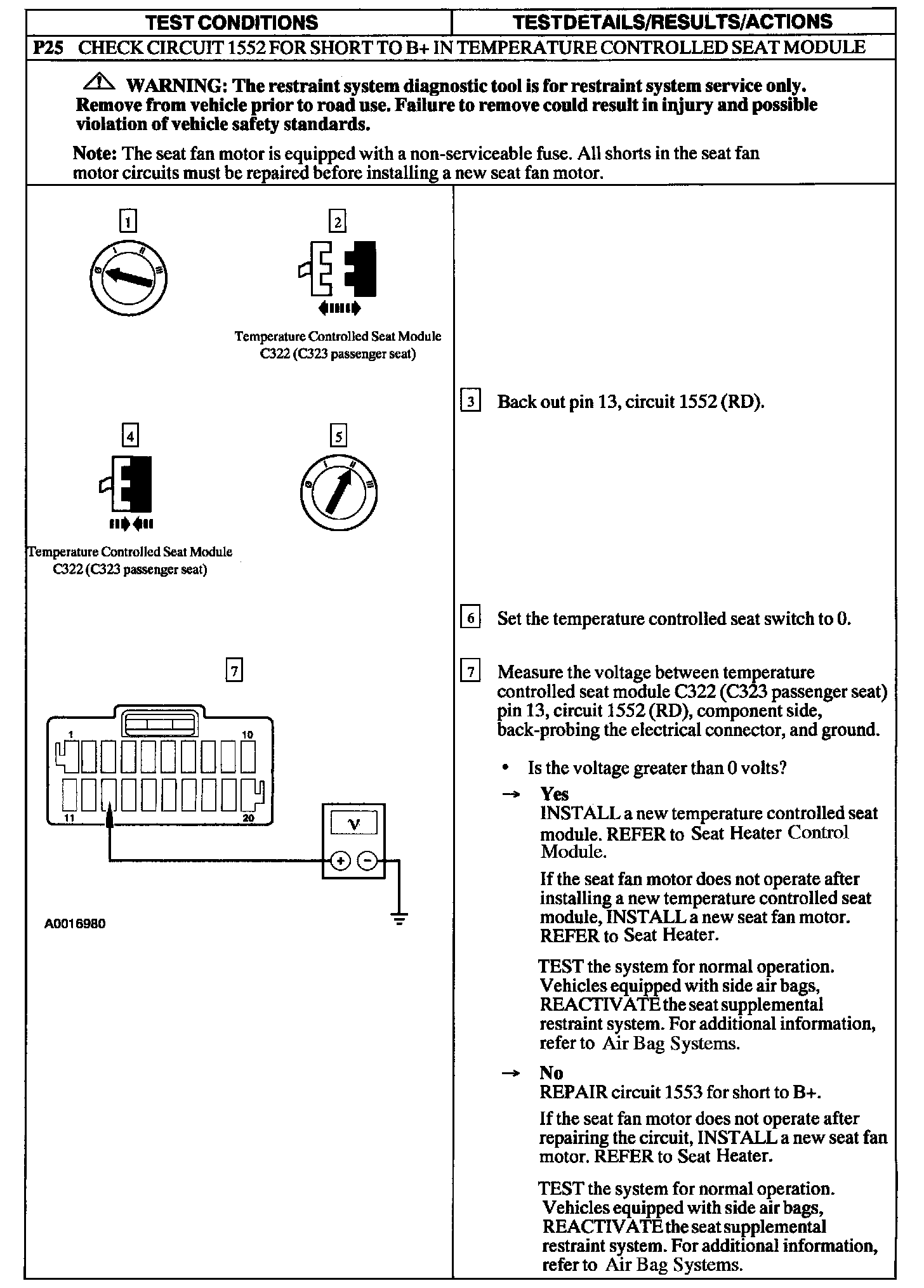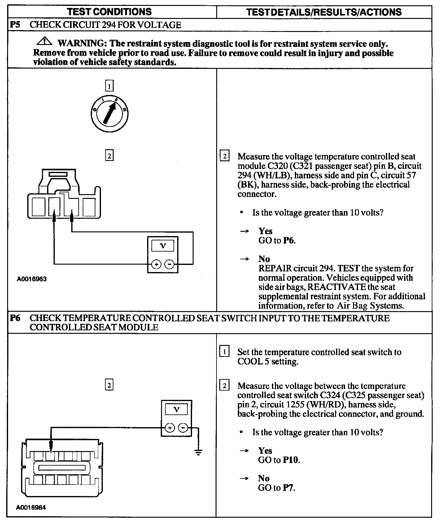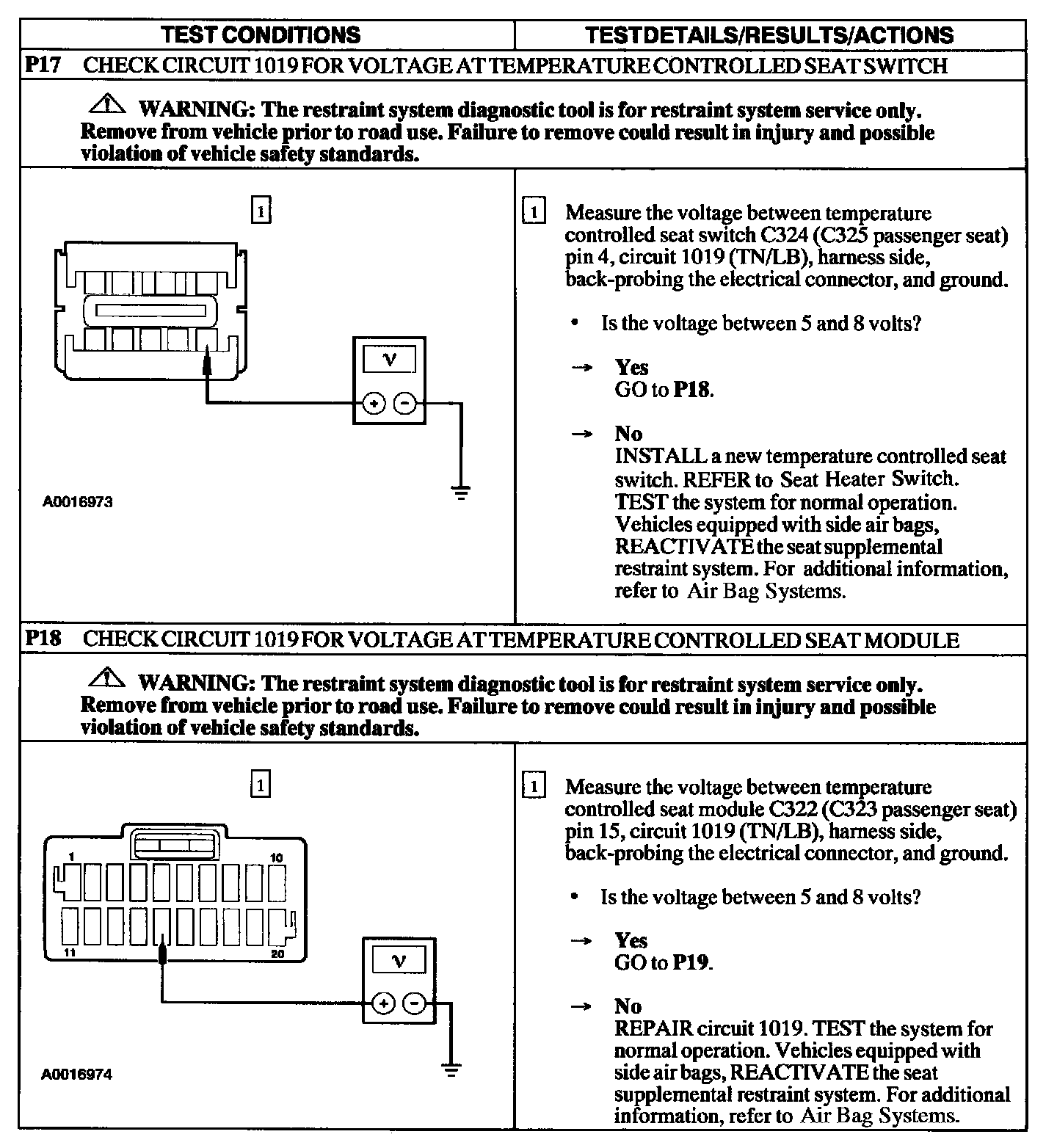 Test P: A Single Temperature Controlled Seat Is Inoperative/Does Not Operate Correctly