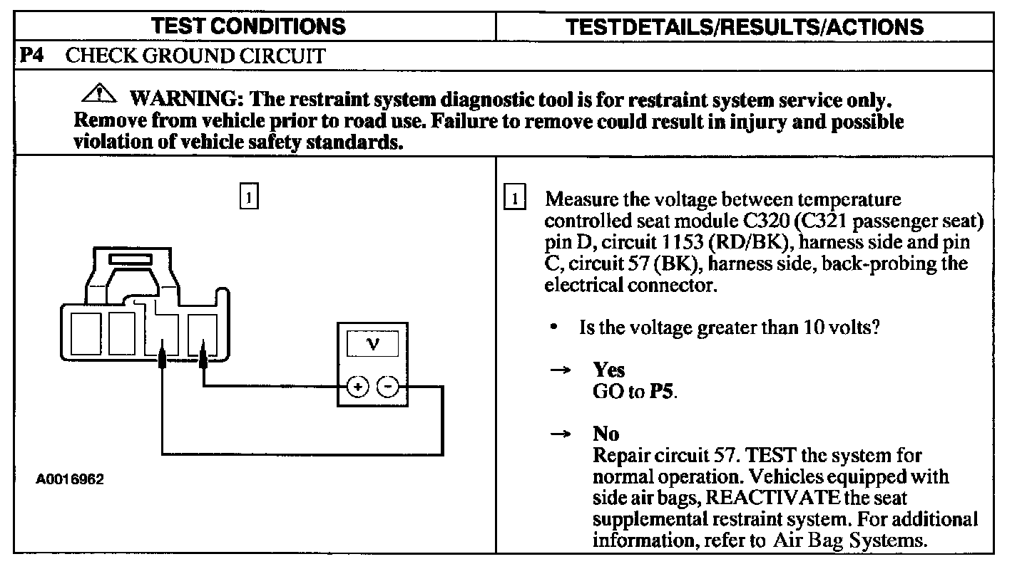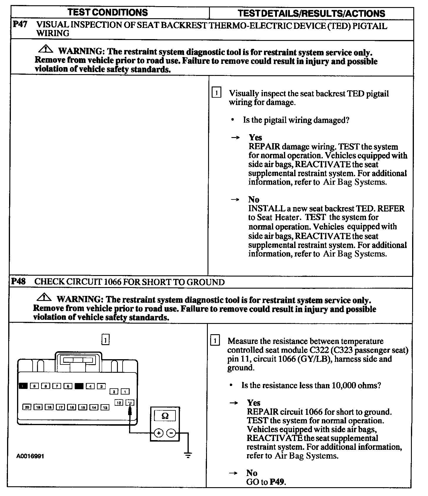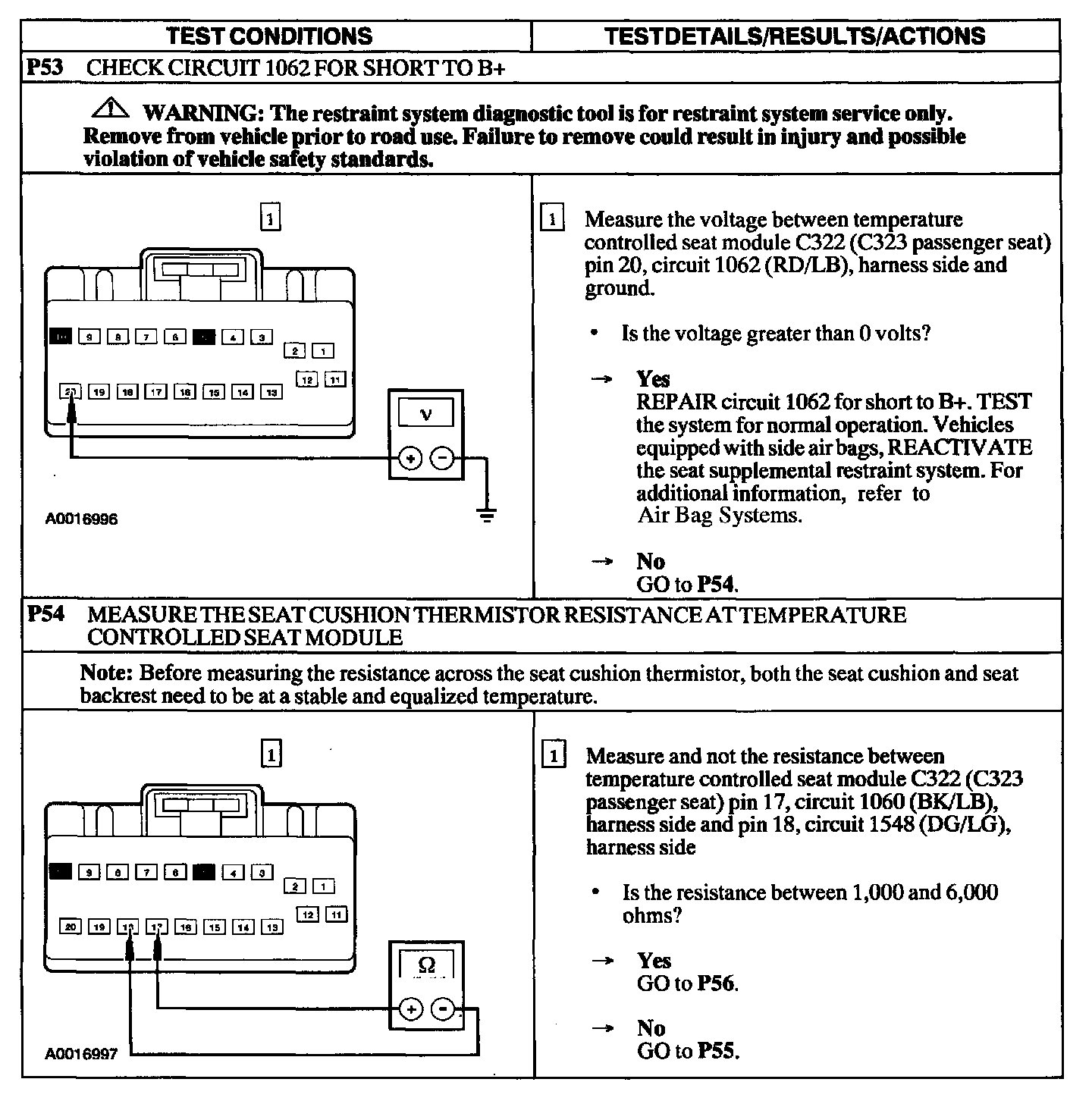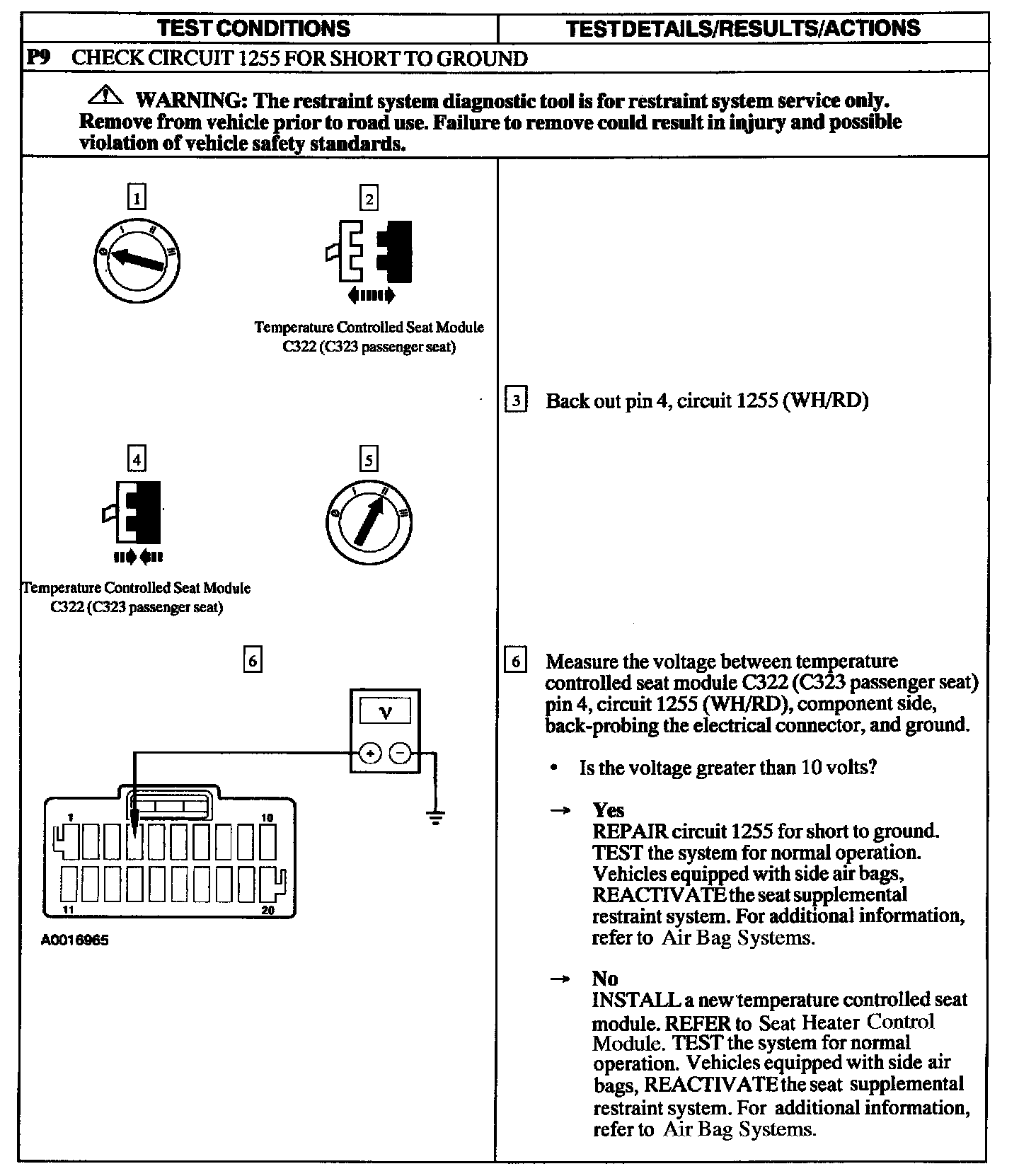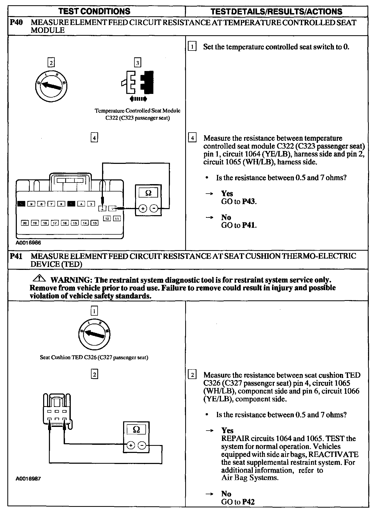 Test P: A Single Temperature Controlled Seat Is Inoperative/Does Not Operate Correctly