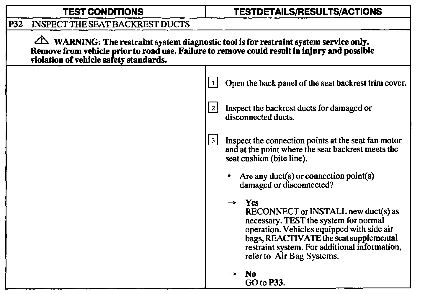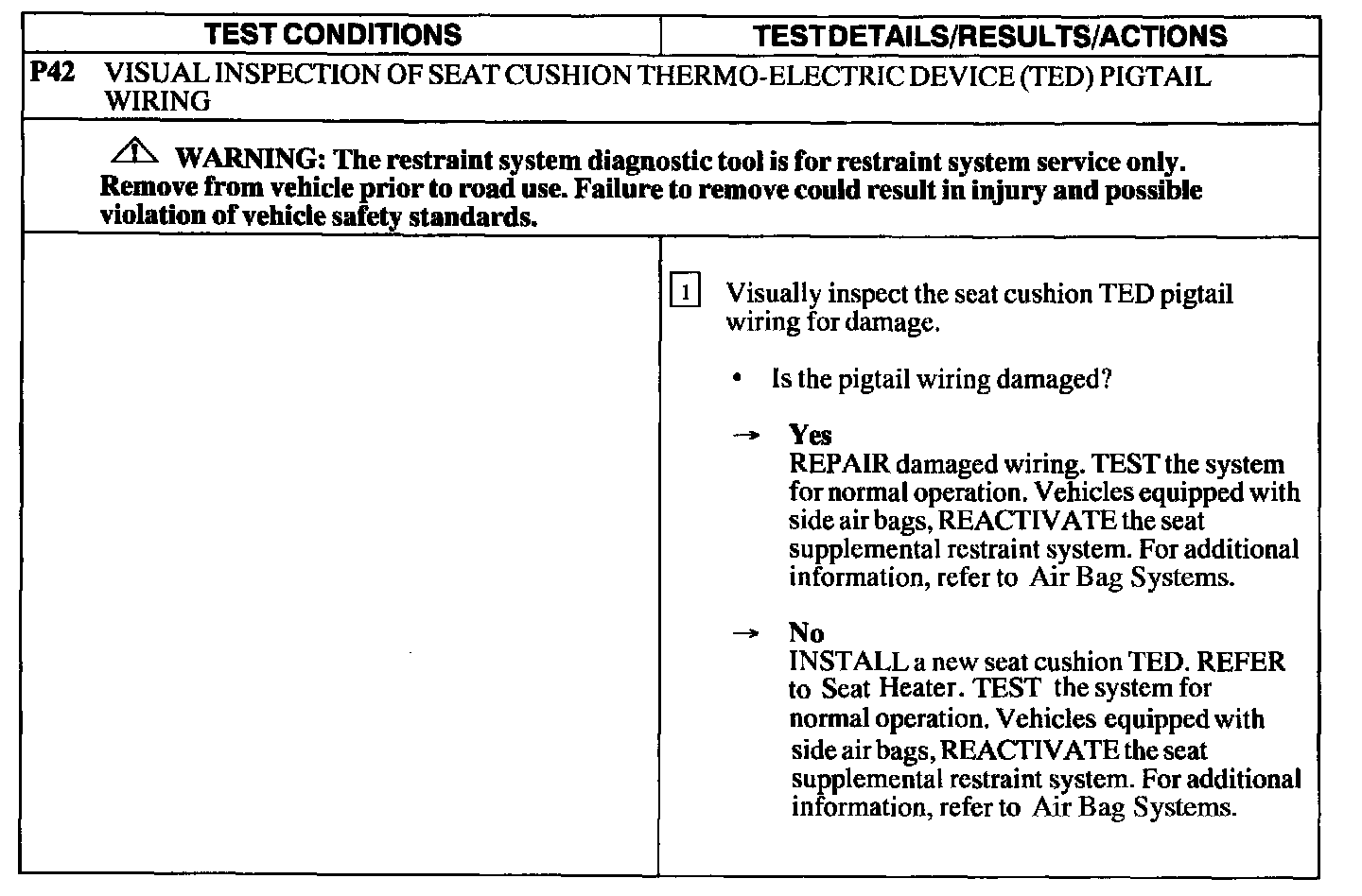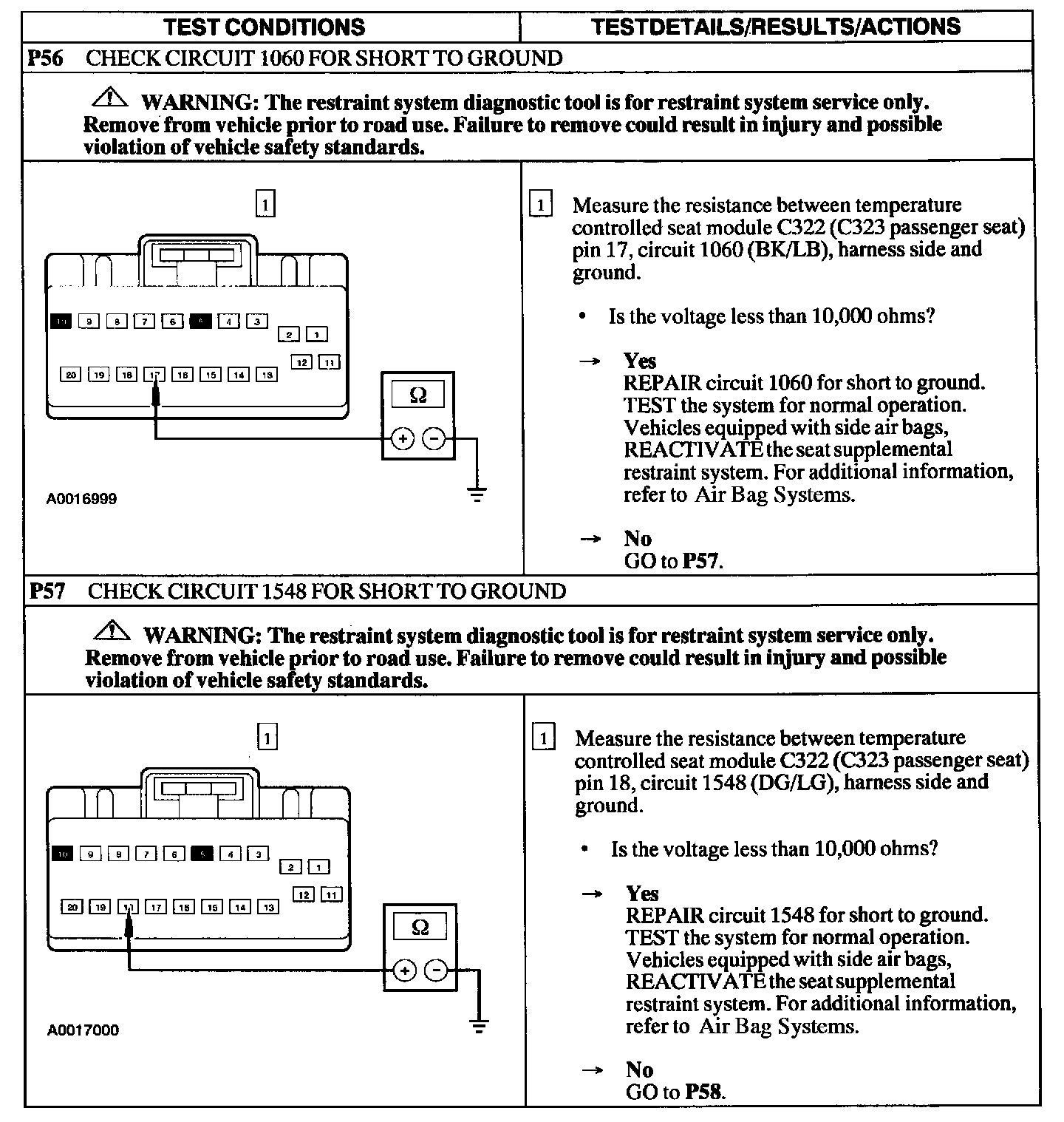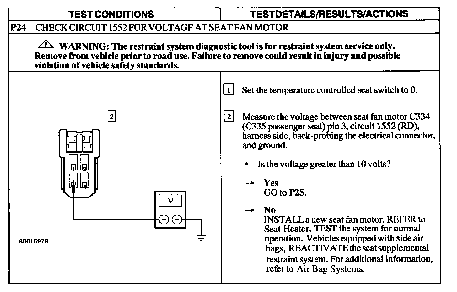 Test P: A Single Temperature Controlled Seat Is Inoperative/Does Not Operate Correctly