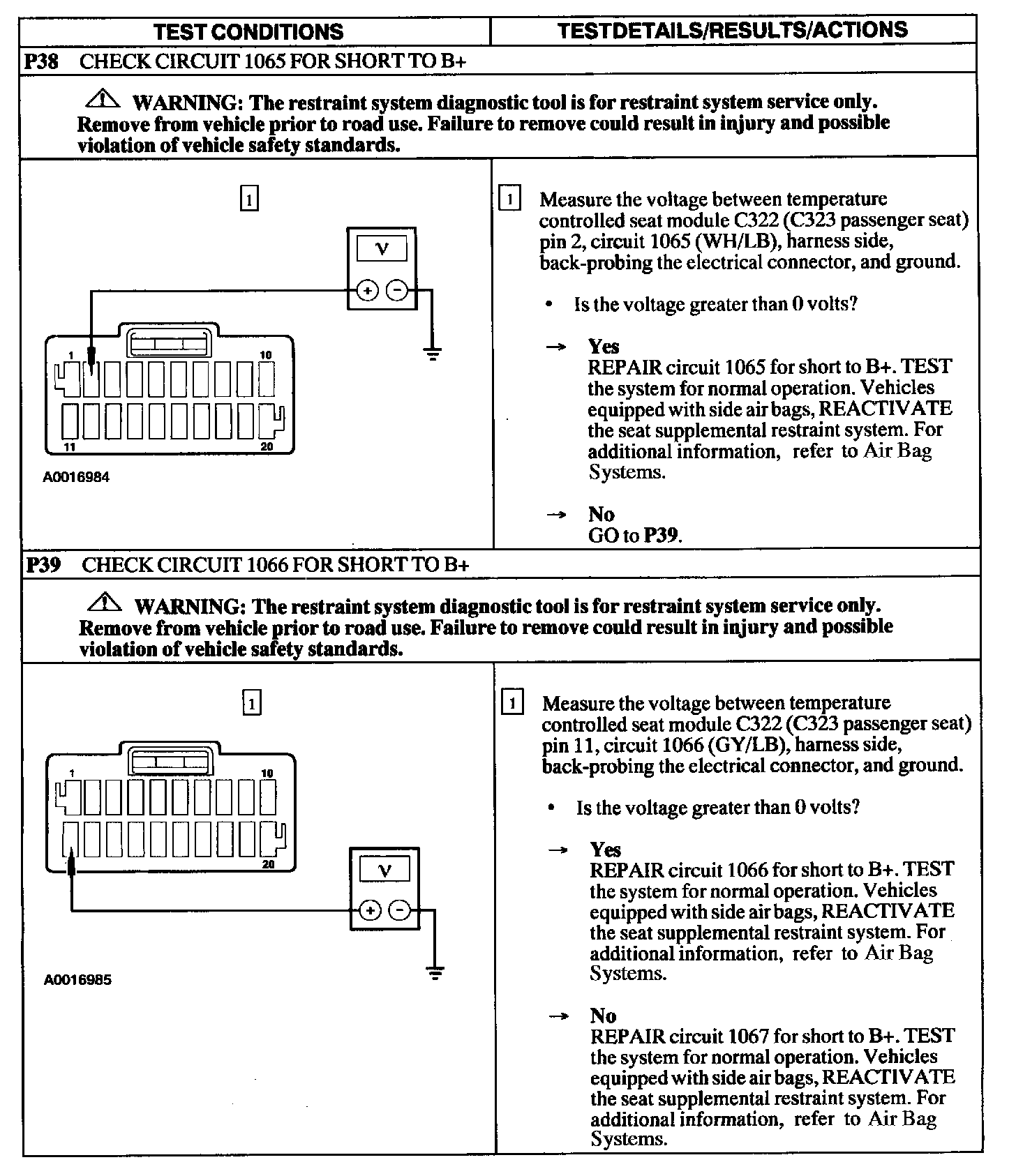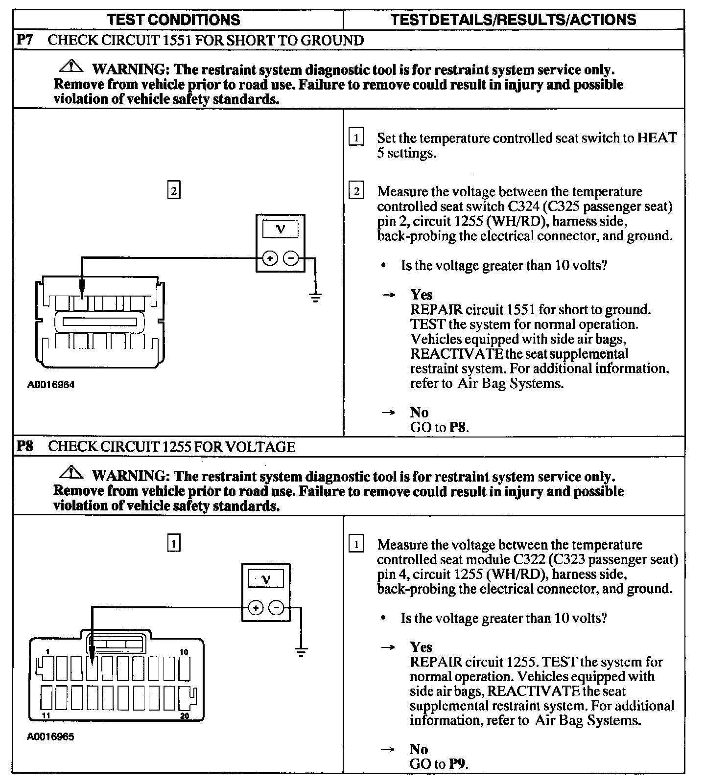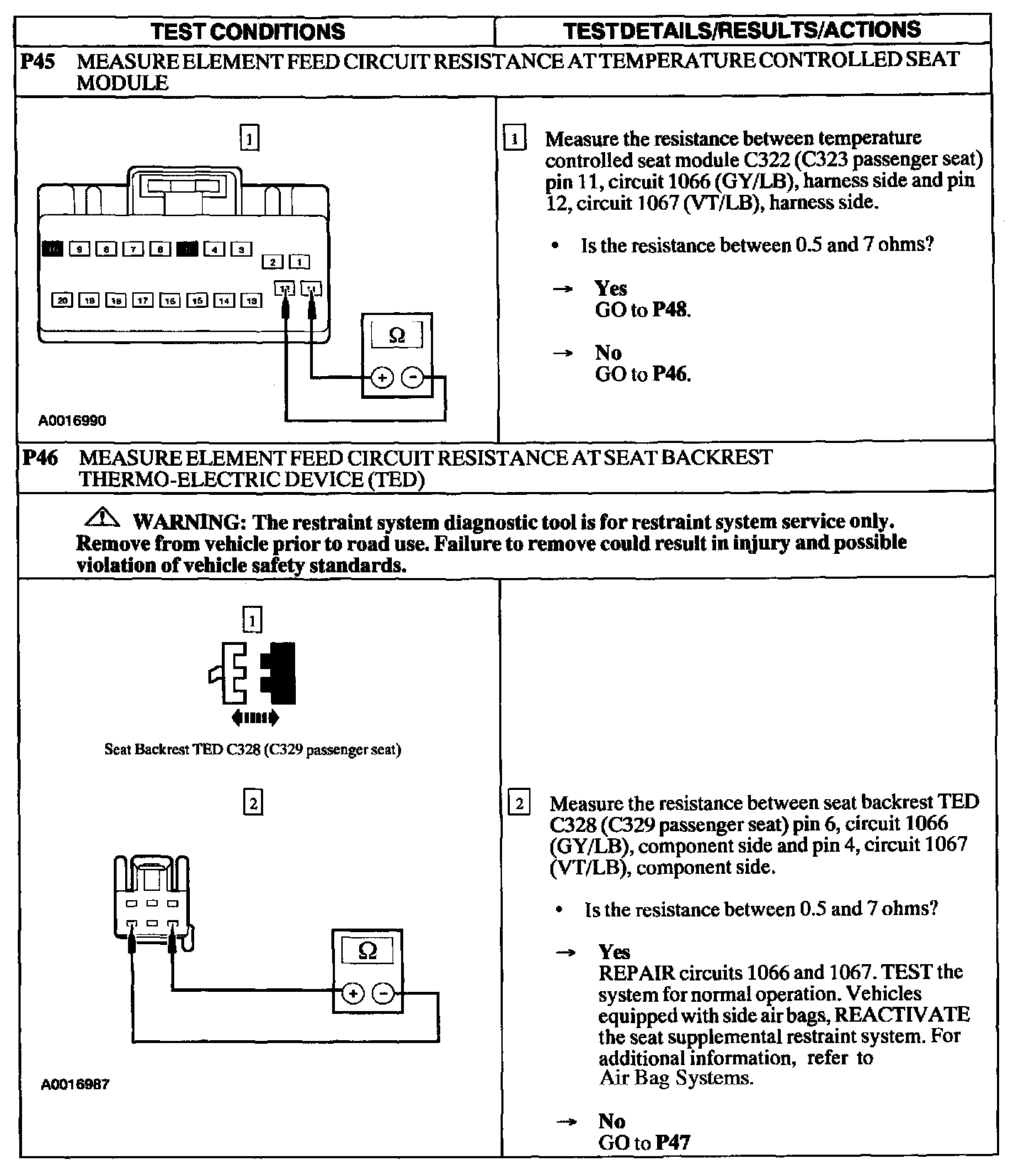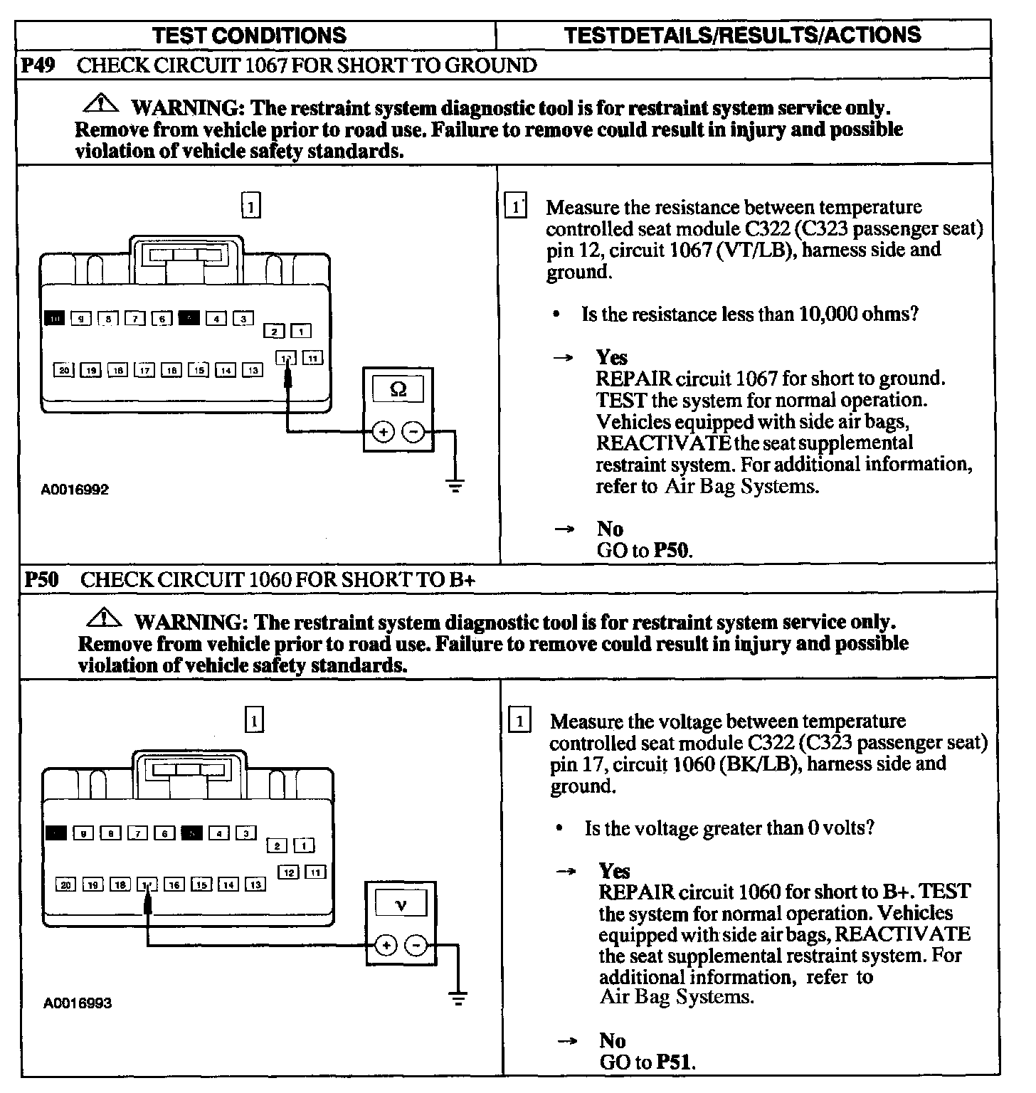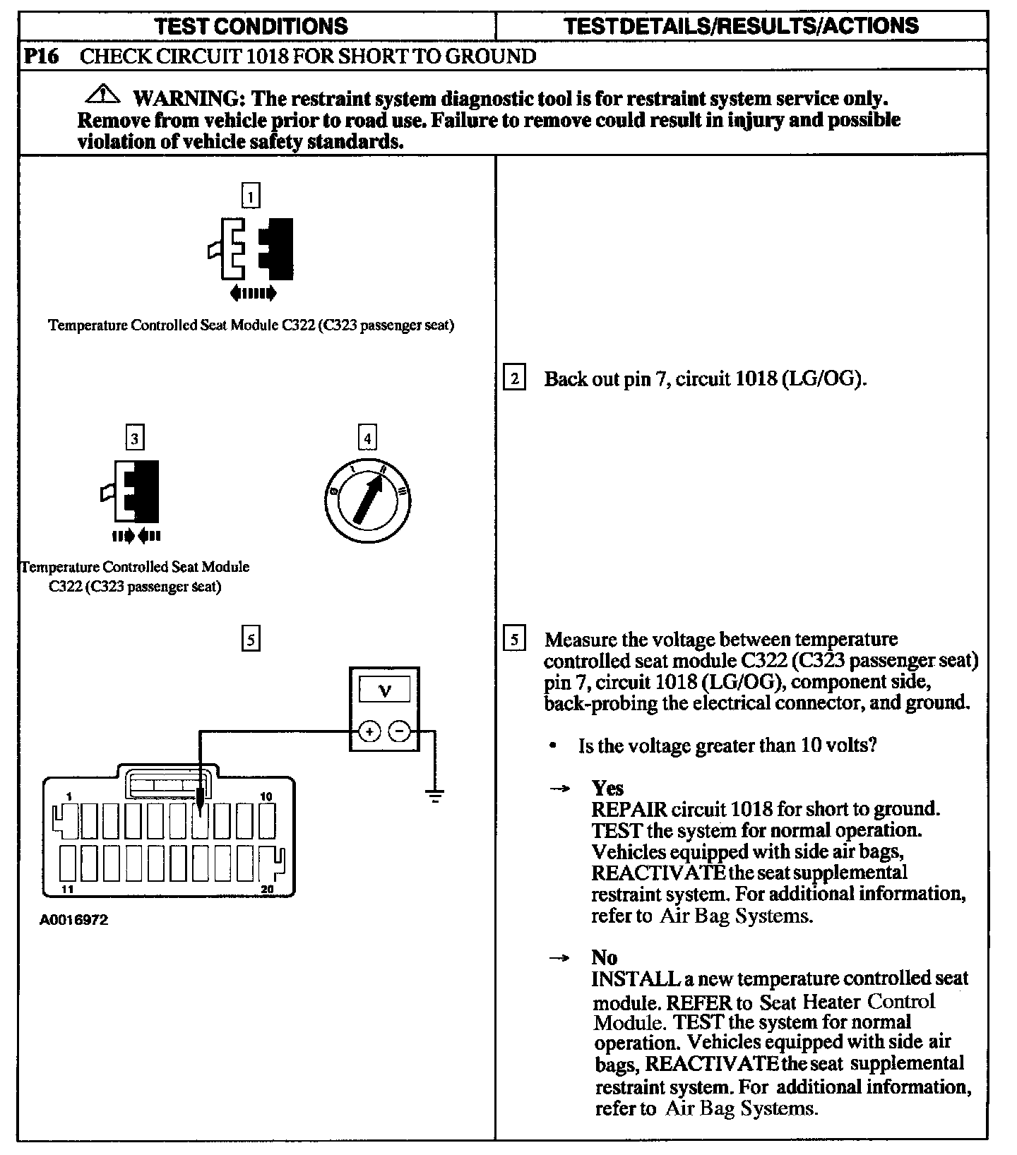 Test P: A Single Temperature Controlled Seat Is Inoperative/Does Not Operate Correctly