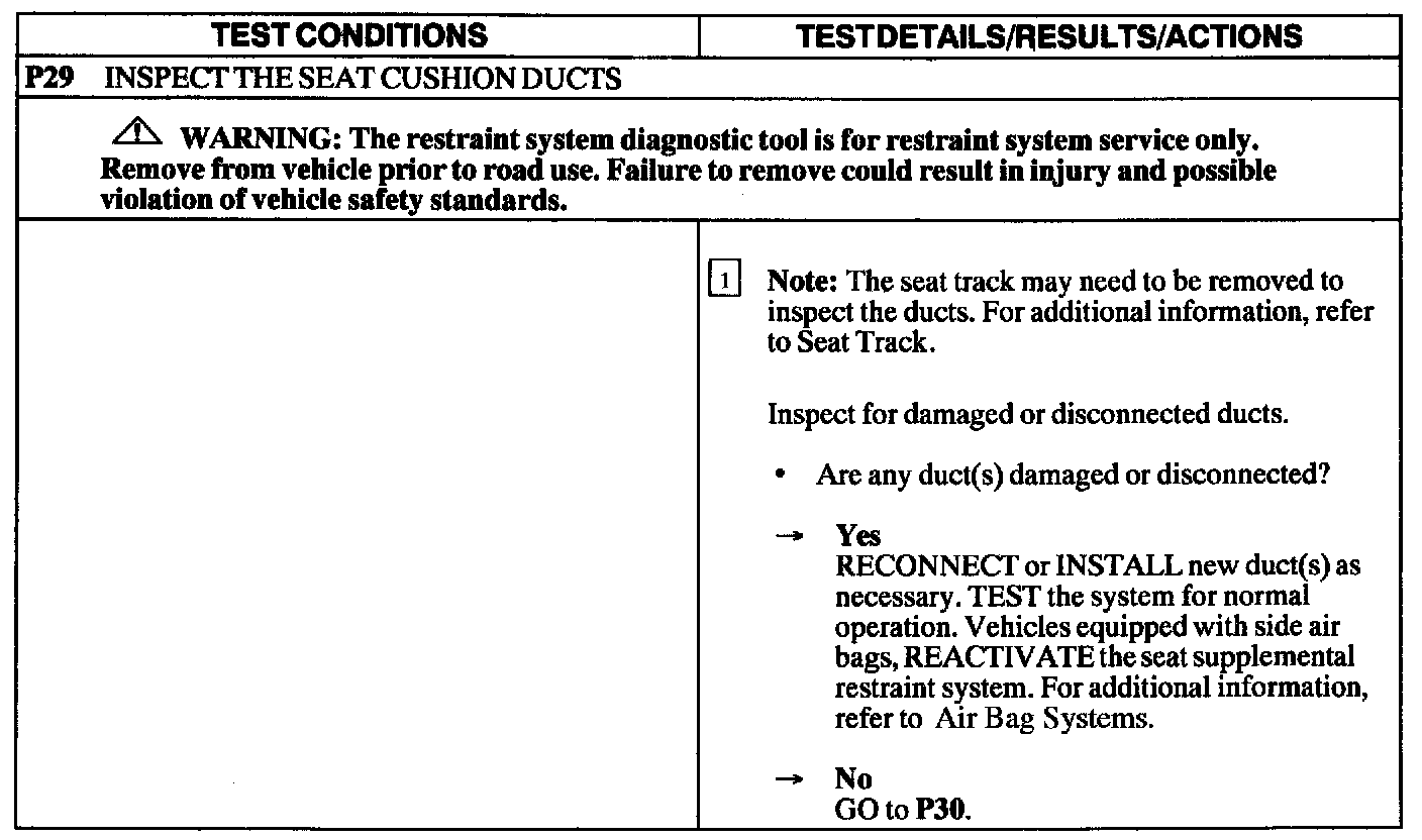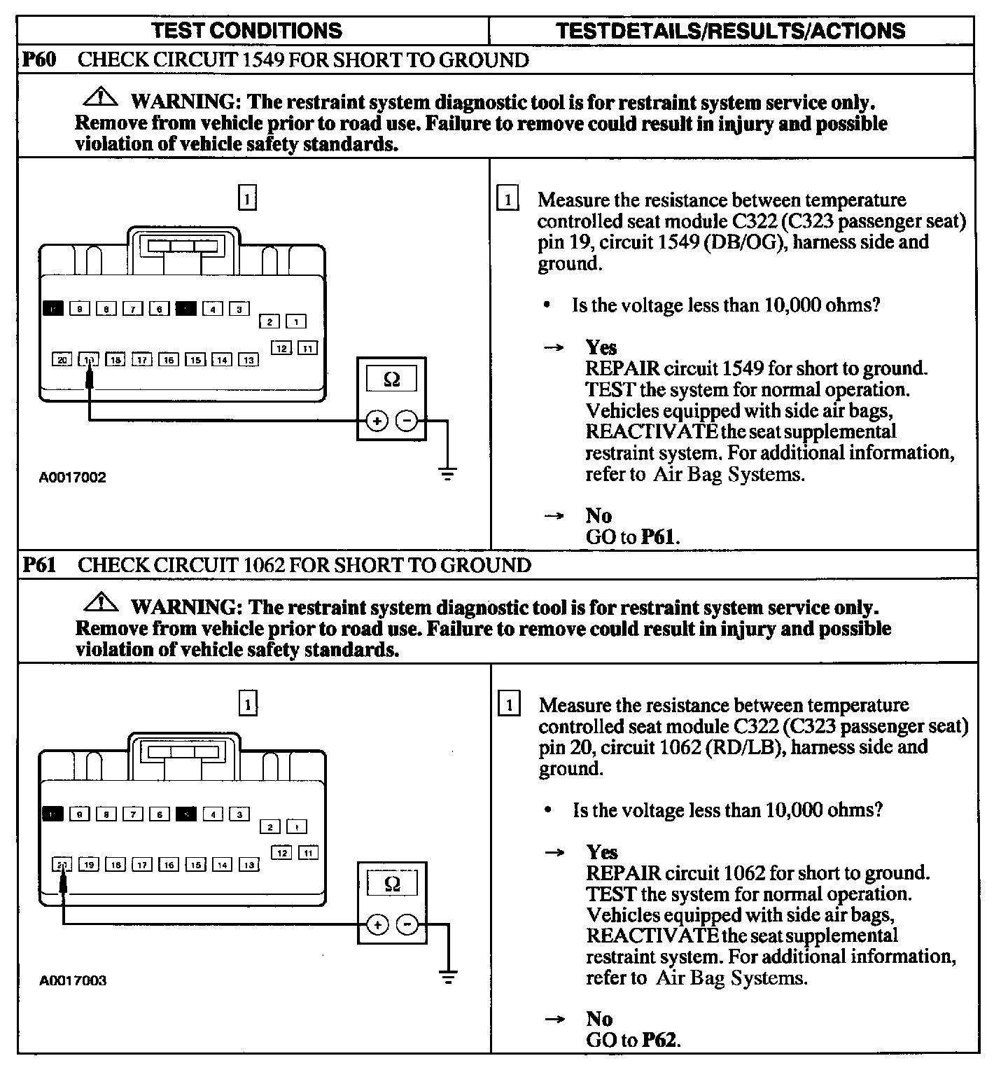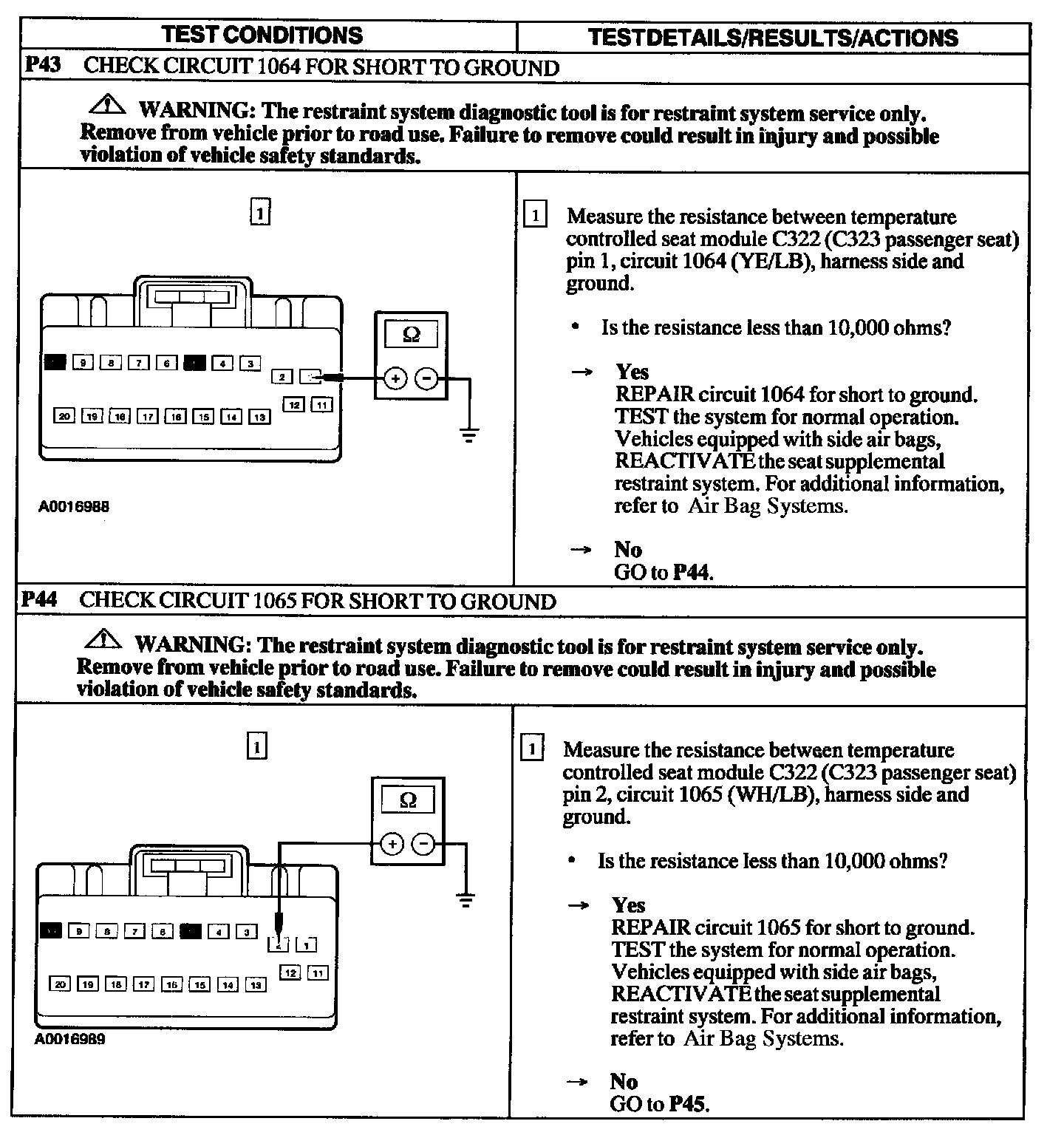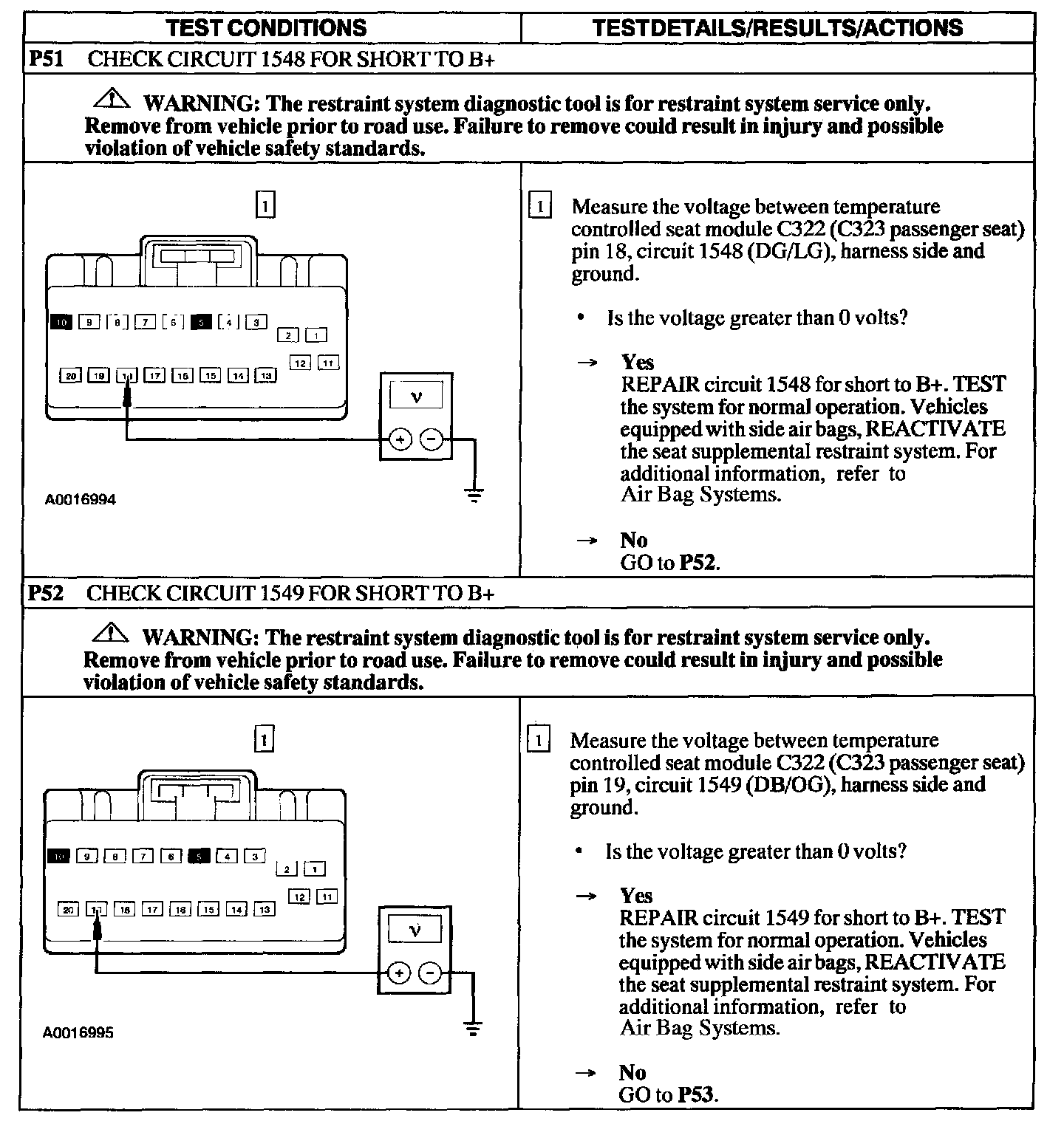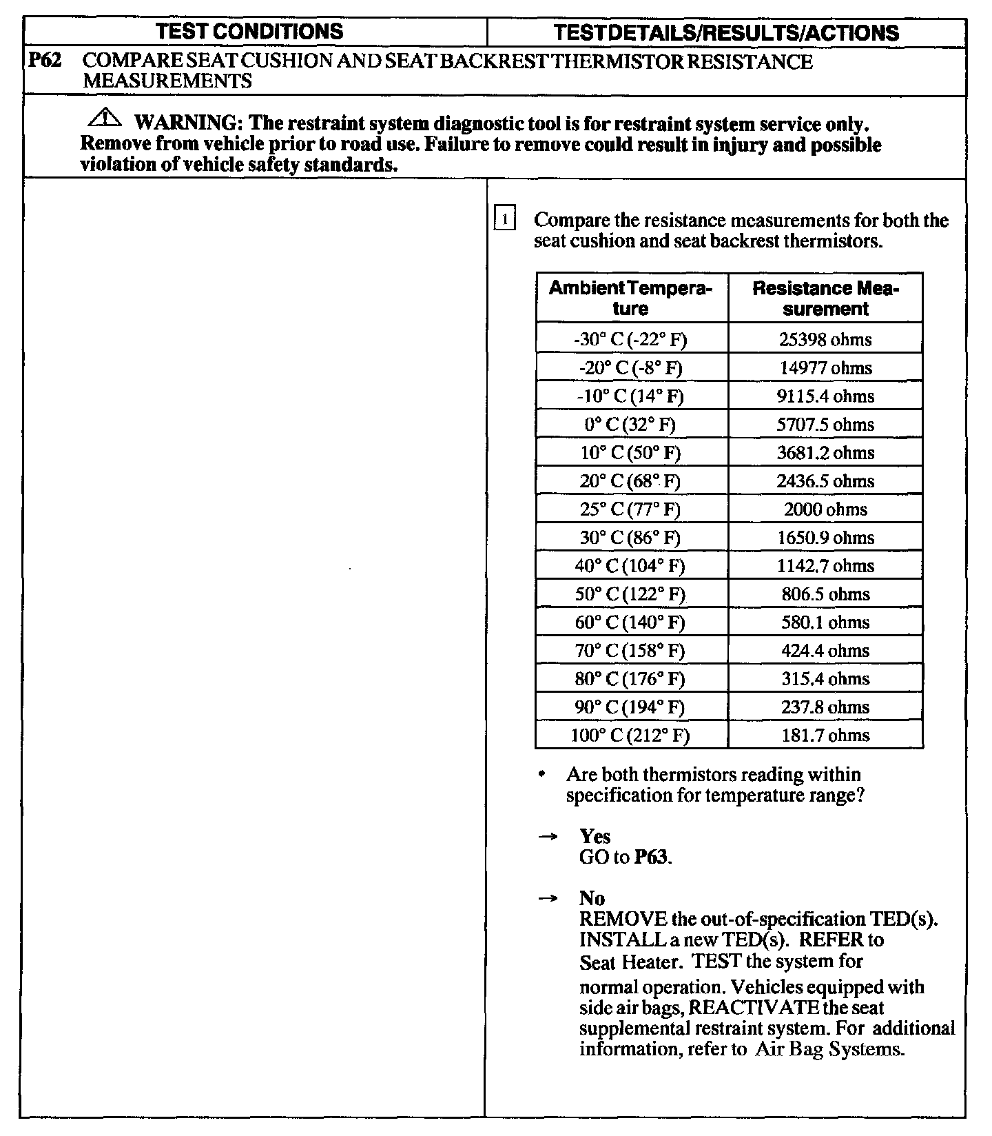 Test P: A Single Temperature Controlled Seat Is Inoperative/Does Not Operate Correctly