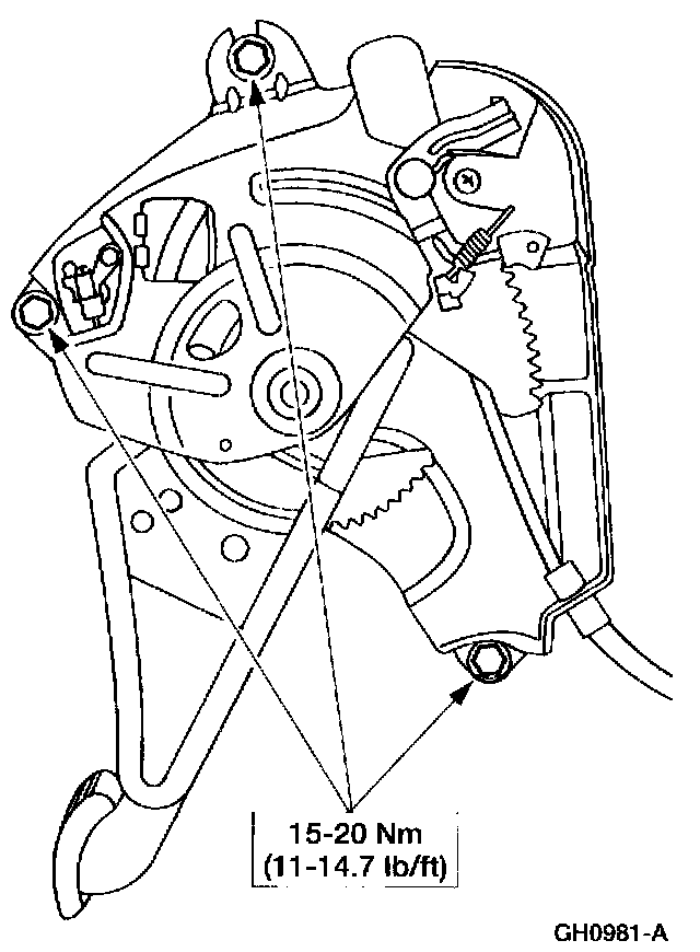 Removal1. Note: Make sure the parking brake control is fully released. Relieve the tension on the parking brake system.