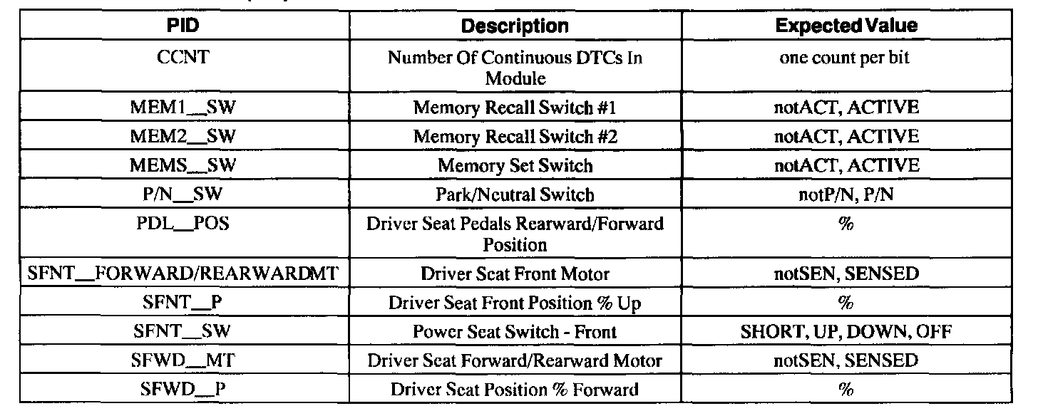 Pinout Values and Diagnostic Parameters