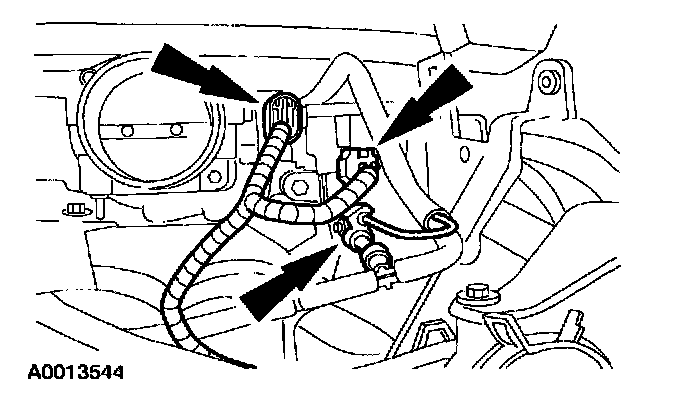 12. Disconnect the throttle position sensor electrical connector and the engine vacuum regulator connector.