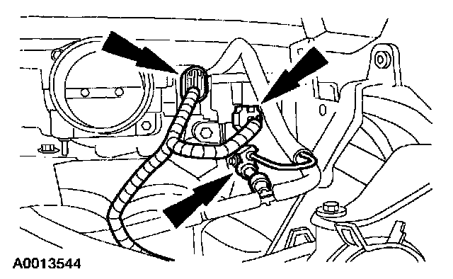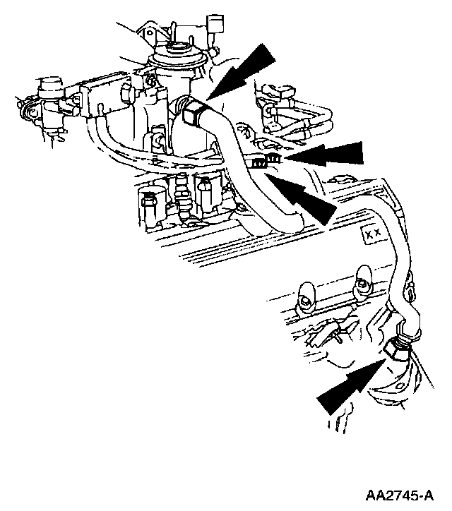11. Disconnect the Exhaust Gas Recirculation (EGR) valve vacuum line and the main vacuum harness.