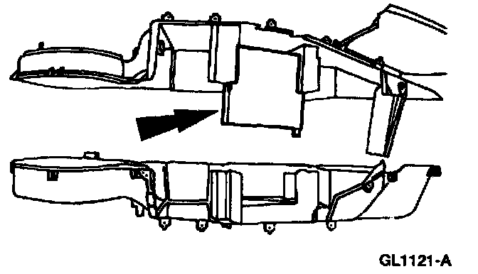 2. Remove the A/C evaporator core. Refer to: Heating and Air Conditioning, Evaporator Core, Service and Repair, Main Climate Control, Main Climate Control