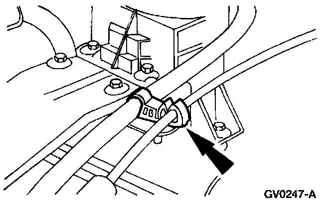 5. Squeeze the accelerator cable lock tabs on the inside of the passenger compartment and push the accelerator cable into the engine compartment.