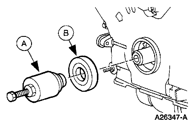 2. Use the (A) Front Cover Seal Remover to remove the (B) front cover seal.