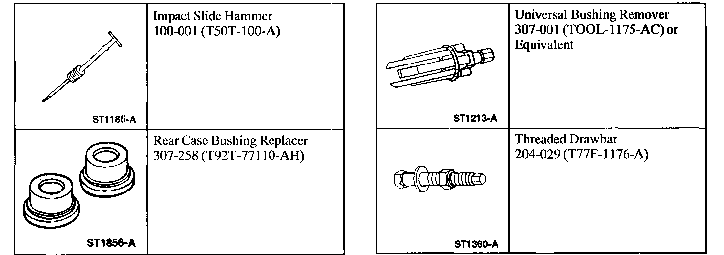 Note: Always replace both bushings when either bushing is replaced. However, remove and replace only one bushing at a time. Use the other bushing in the case to help align the tool and replacement bushing during installation.