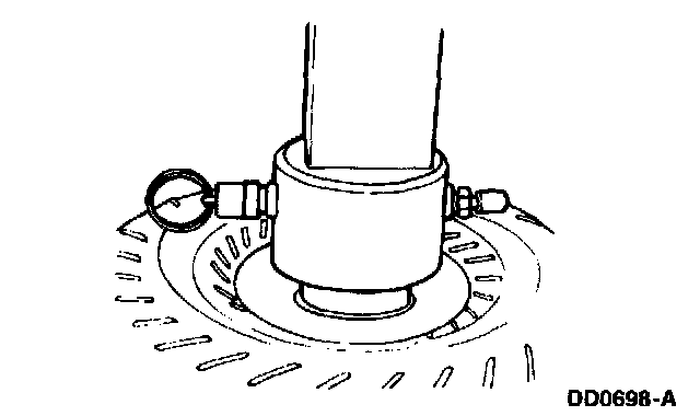 6. Remove the air hose. Release the pressure, and then slowly release the press. Remove the converter. Remove the tool.