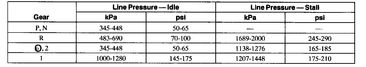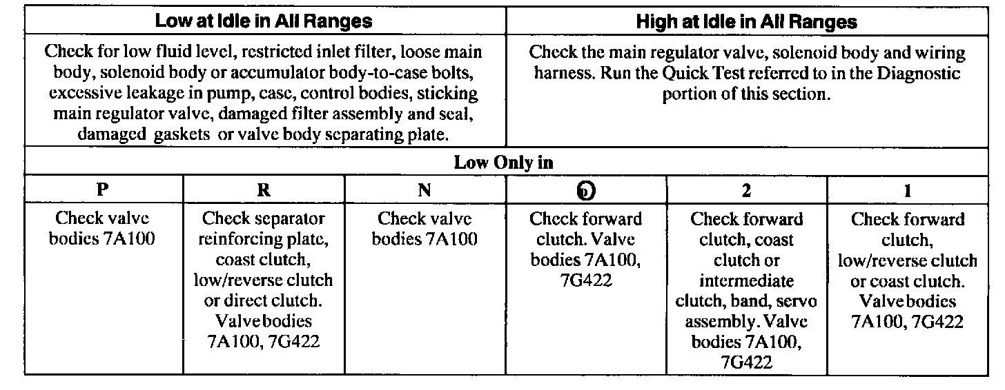 Line Pressure Diagnosis Chart