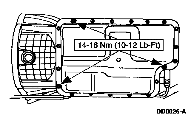 5. Reinstall the transmission fluid pan-to-case retaining bolts removed to install the jack adapter.