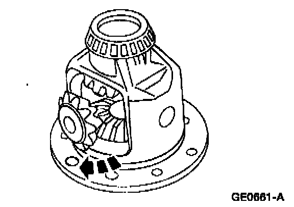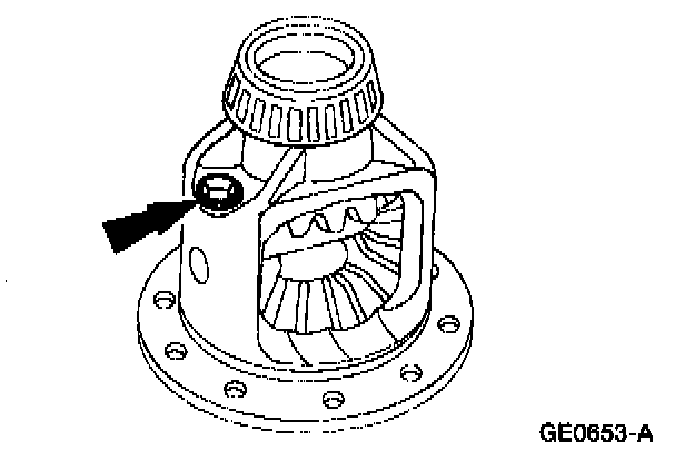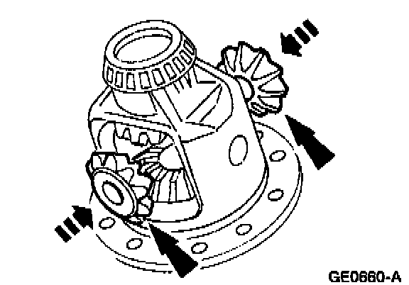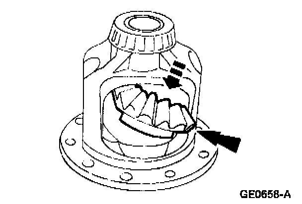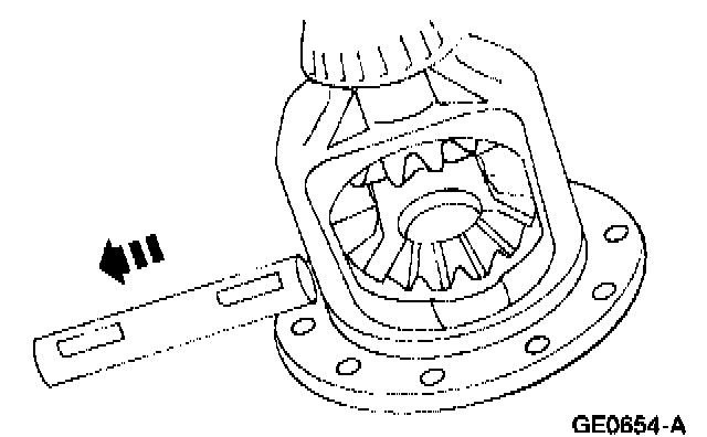 1 Rotate the differential pinion gears to the differential case window, and remove them.