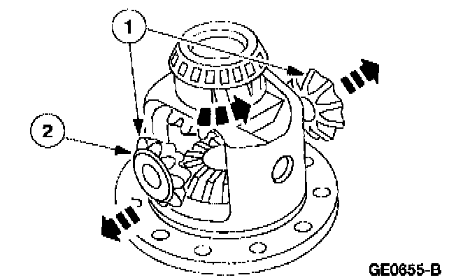 5. Engage the differential pinion gears opposite the differential side gears.