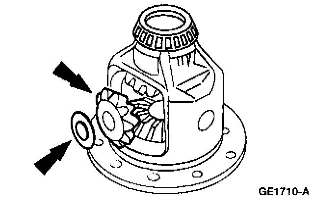 6. Remove the differential side gears and the differential side gear thrust washers.