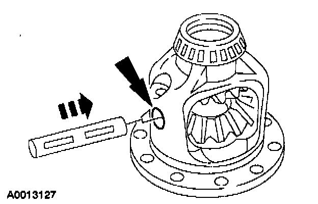 6. Rotate the differential pinion gears to align with the differential pinion shaft bore.