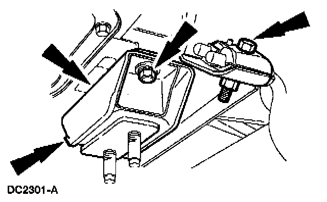 8. Loosen, but do not remove the transmission mount-to-crossmember nuts.