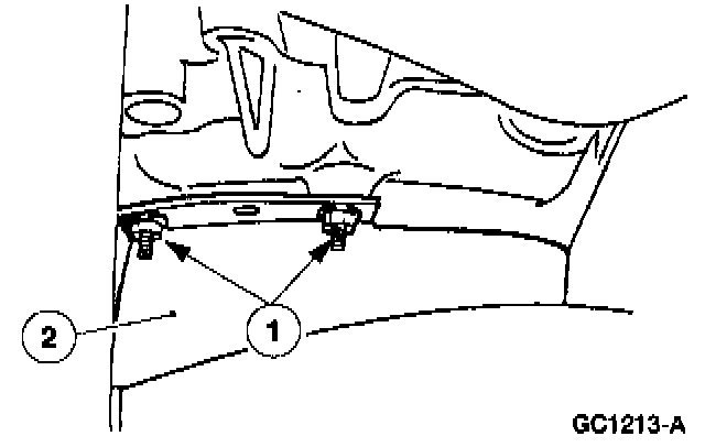 7. Remove the two exhaust heat shield-to-crossmember bolts (one each side).