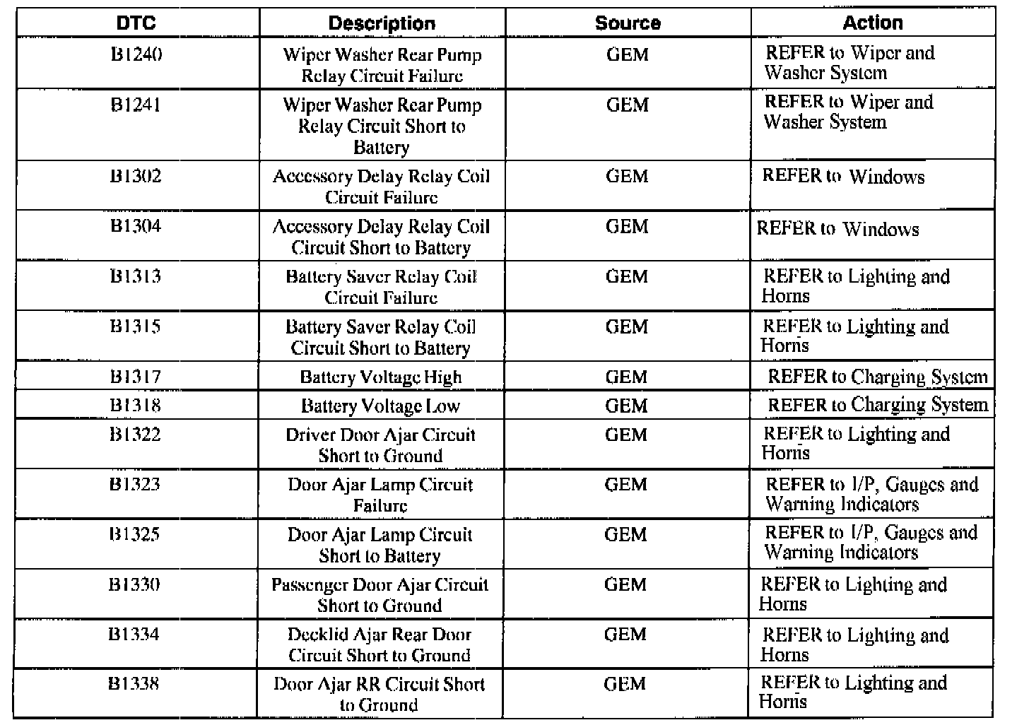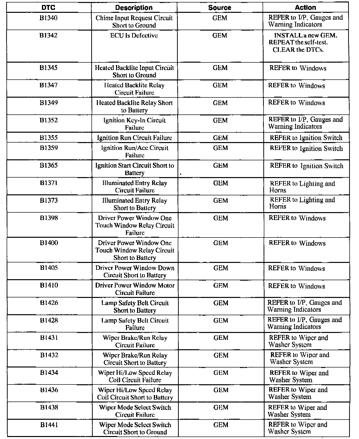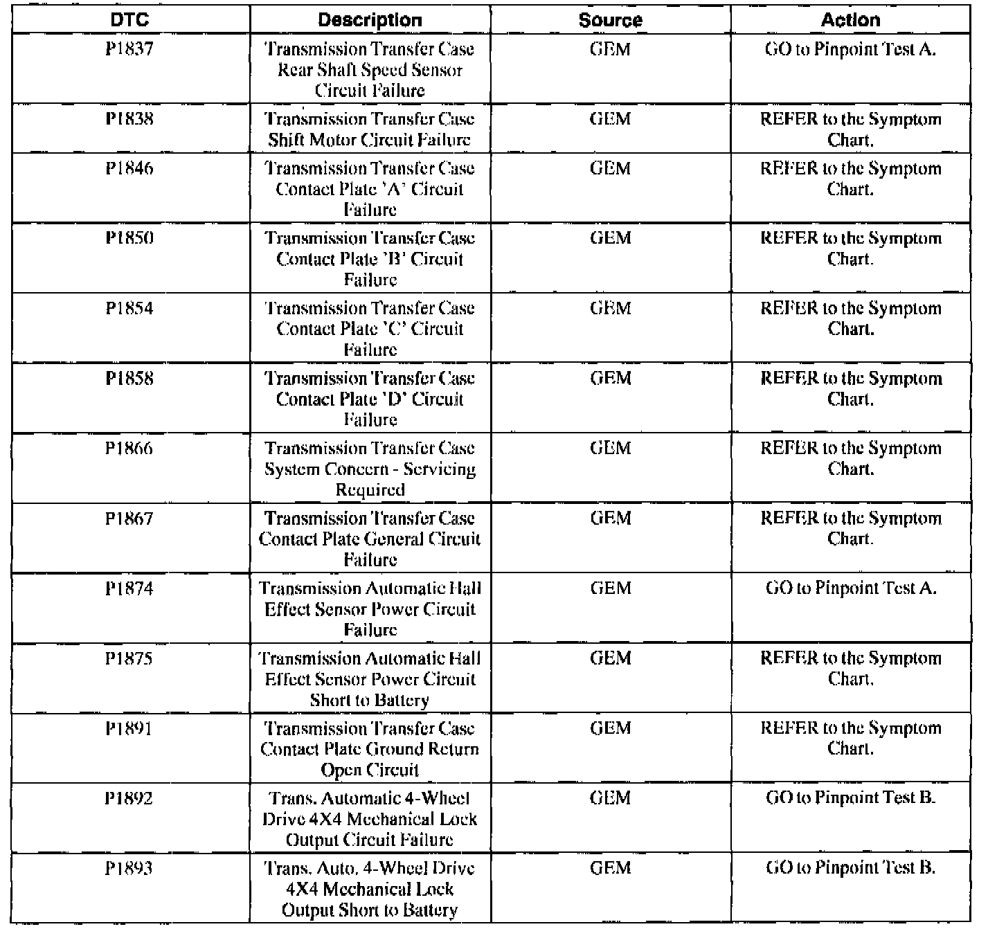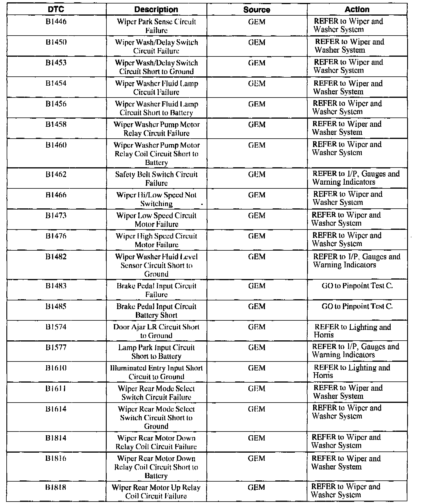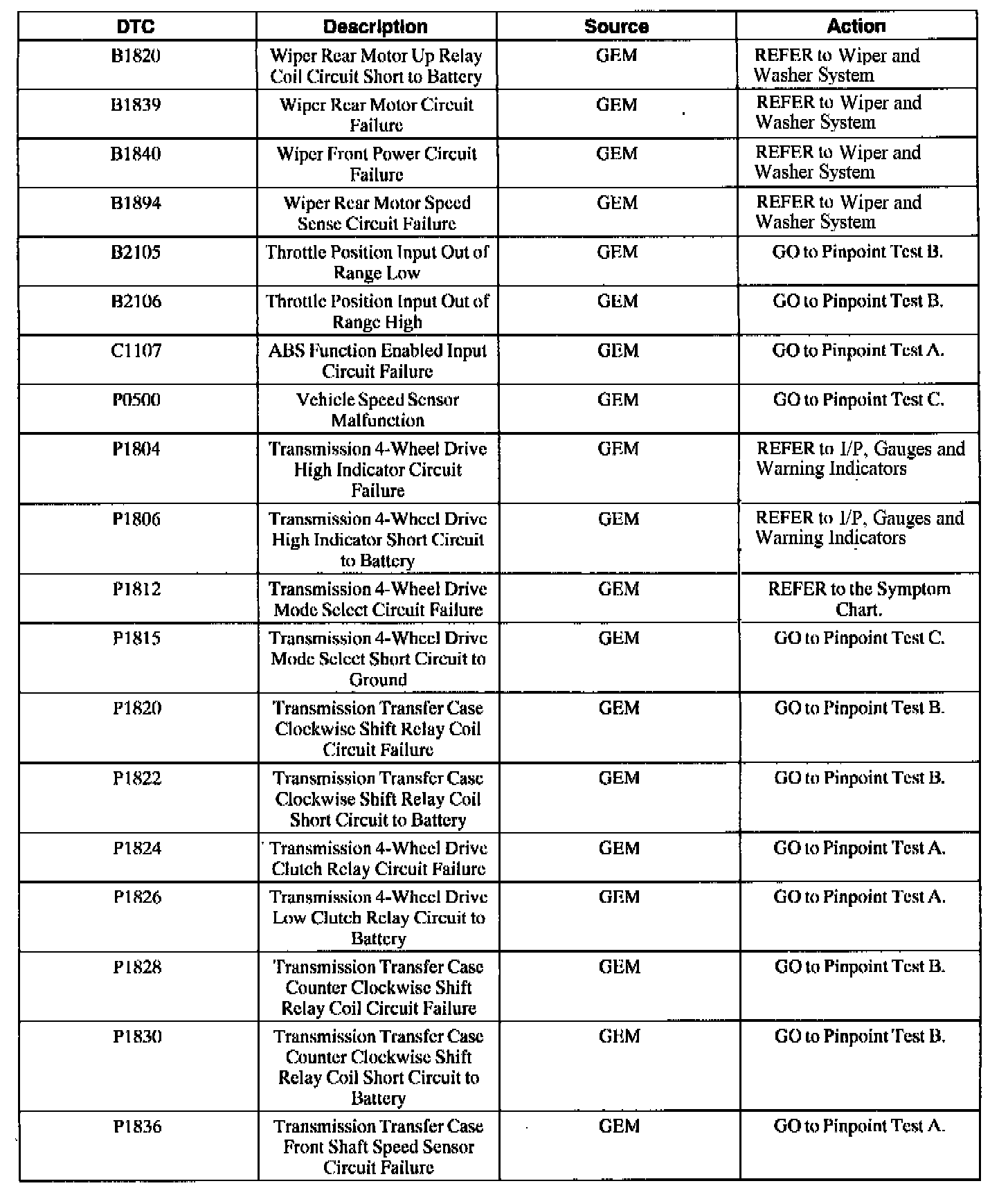 B1820-B2106 / C1107 / P0500-P1836: