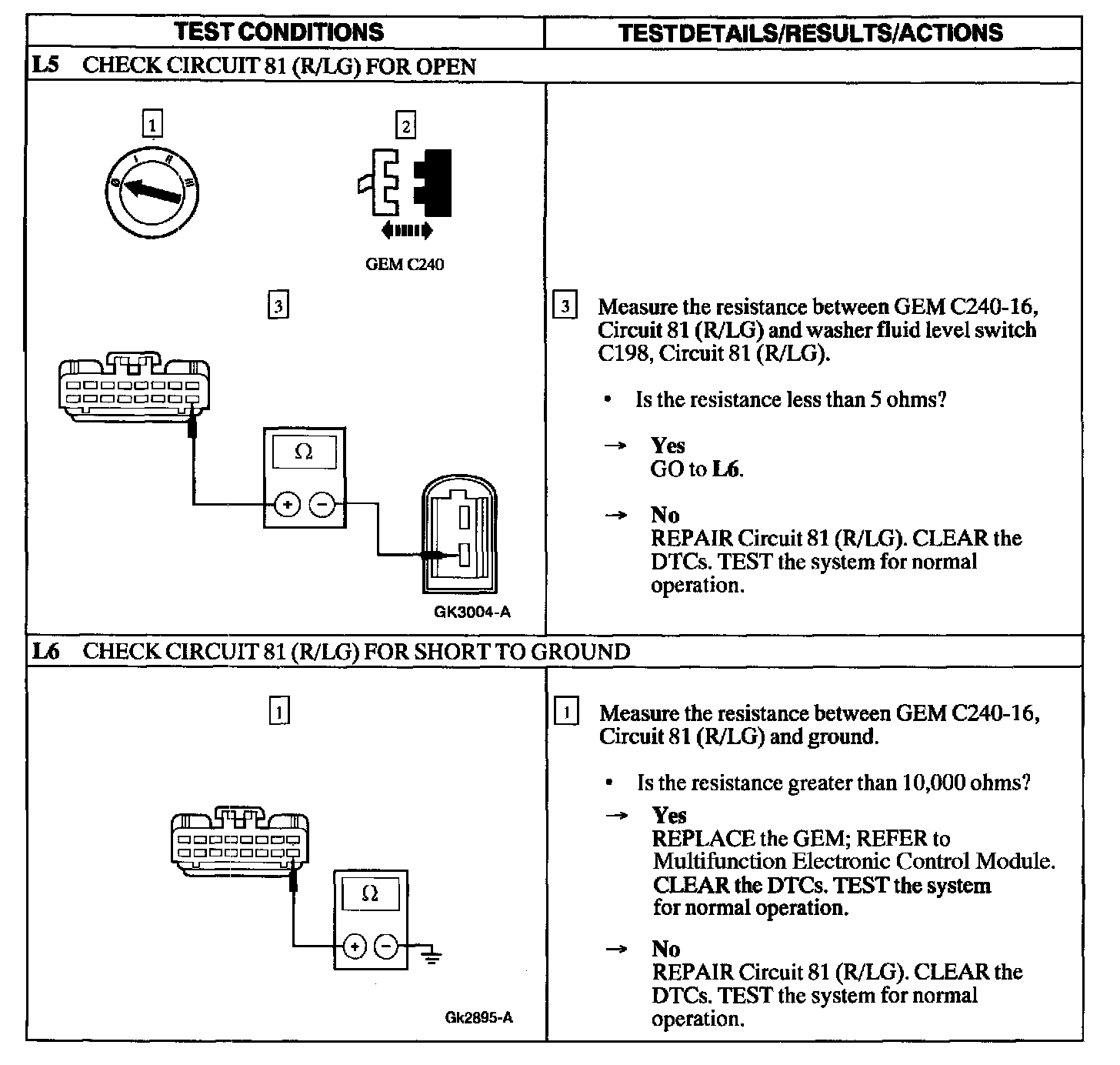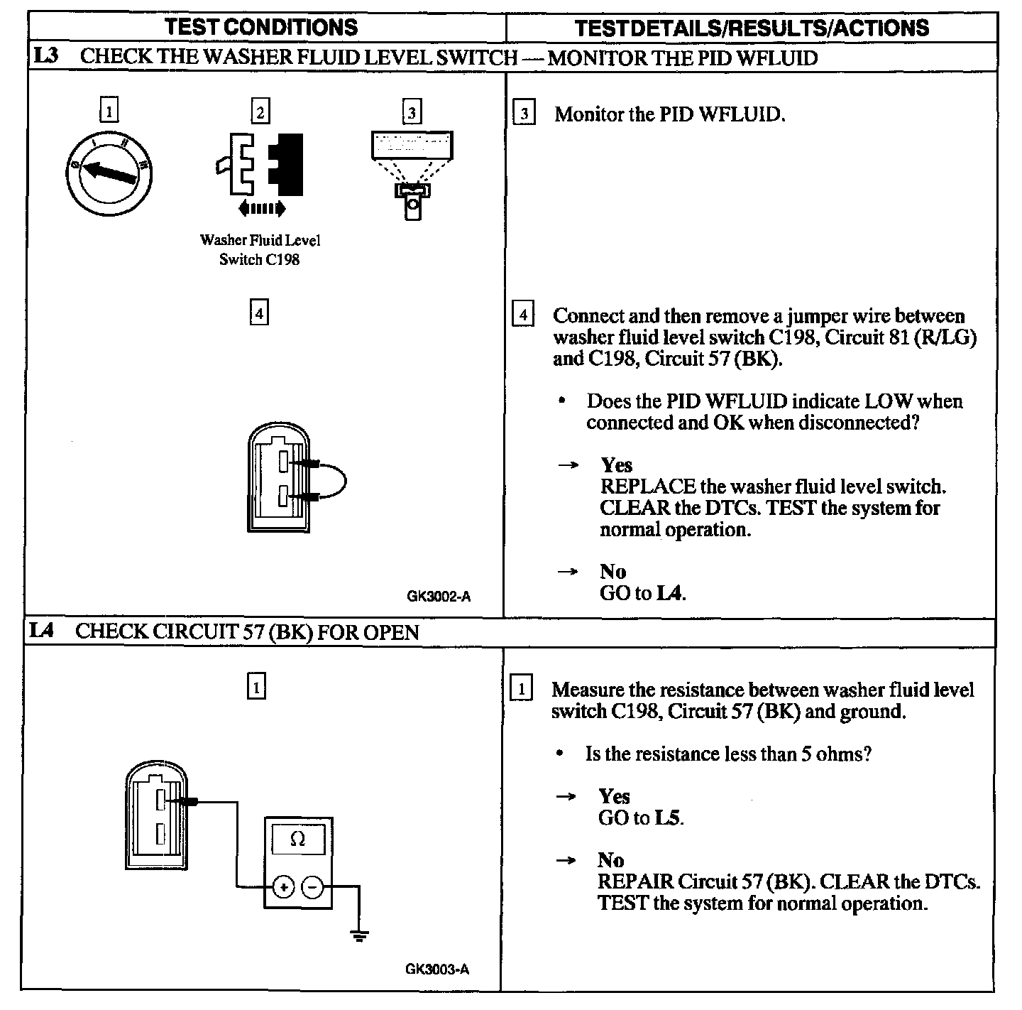 Test L: Low Washer Fluid Indicator Does Not Operate Correctly