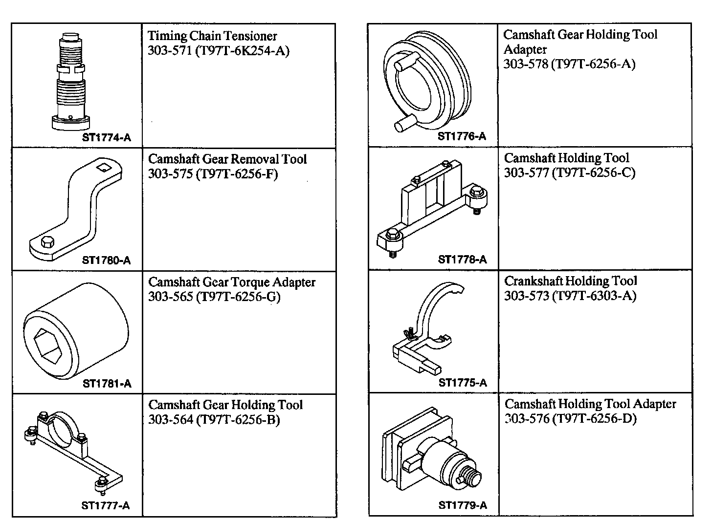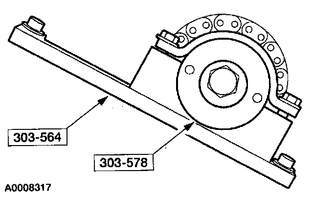 CAUTION: To do this procedure you MUST use the special service tools. Ford does not provide timing marks or any additional information for repair or replacement of the timing chains without the special tools listed.