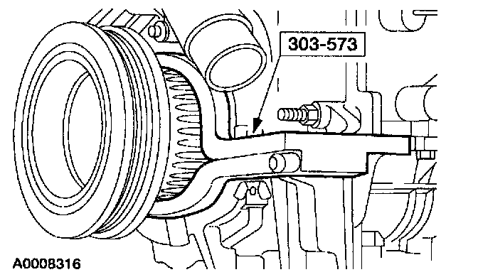 Note: The special tool must be installed on the damper and should contact the engine block, this positions the engine at top dead center (TDC).