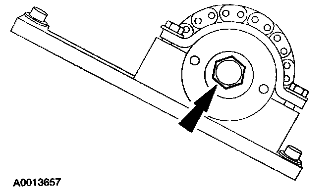 27. Loosen the LH camshaft sprocket bolt.