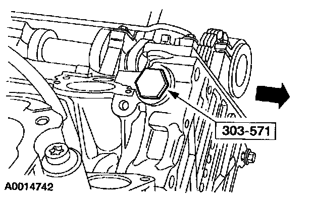 30. Remove the LH camshaft tensioner and install the special tool.