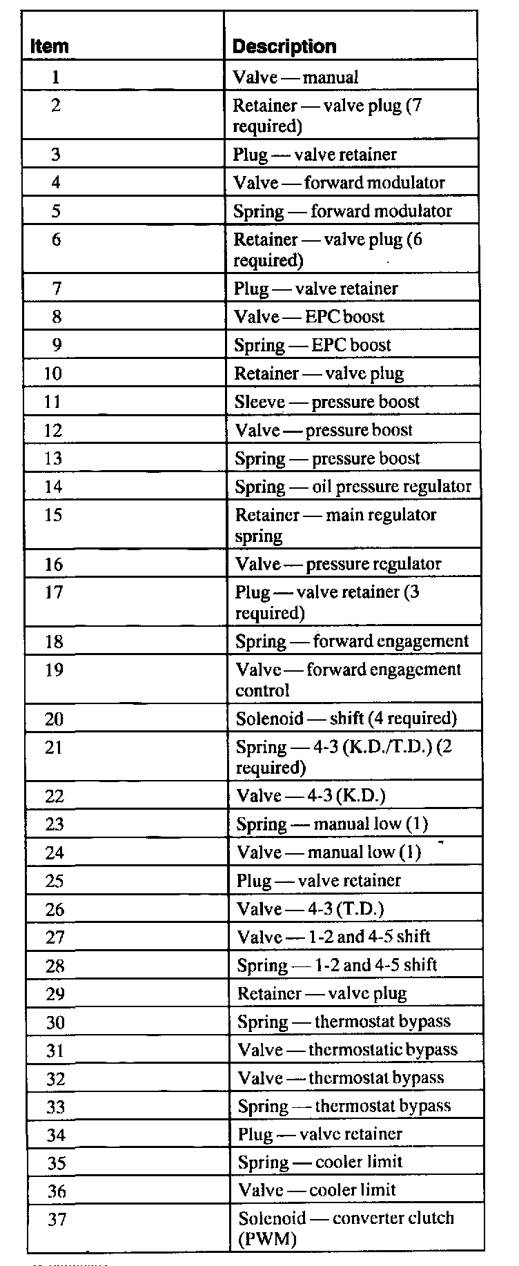8. CAUTION: The springs and valves are not interchangeable. Damage to transmission may occur.