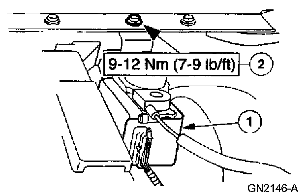 7. NOTE: The front door must be open to gain access to the fender bolt.