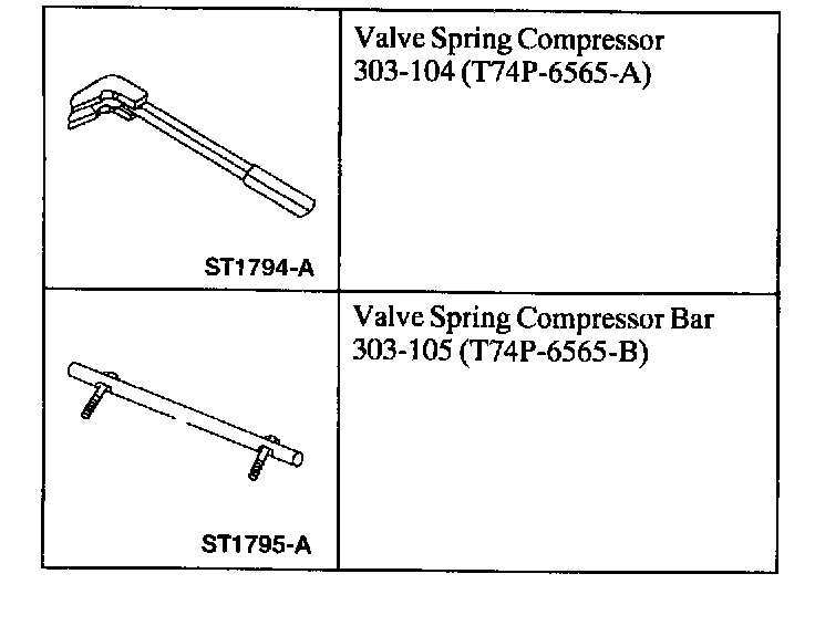 6. Using the Valve Spring Compressor Bar and the Valve Spring Compressor, remove the valve spring retainer key.