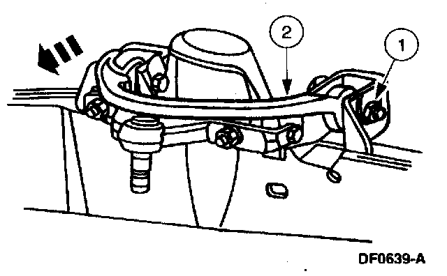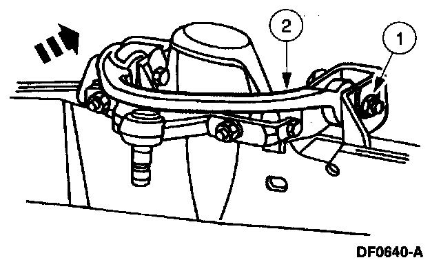 6. Note: A pry bar can be used between the front suspension arm bushing joint and the frame pocket to aid in moving the arm.