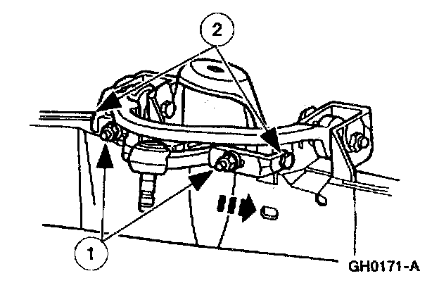 2 To increase camber, move the front suspension arm bushing joint outboard equally.
