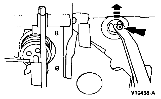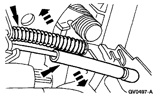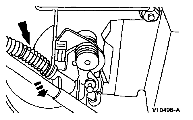 2. Collapse the clips at the dash panel and push the accelerator cable through the dash panel into the engine compartment.